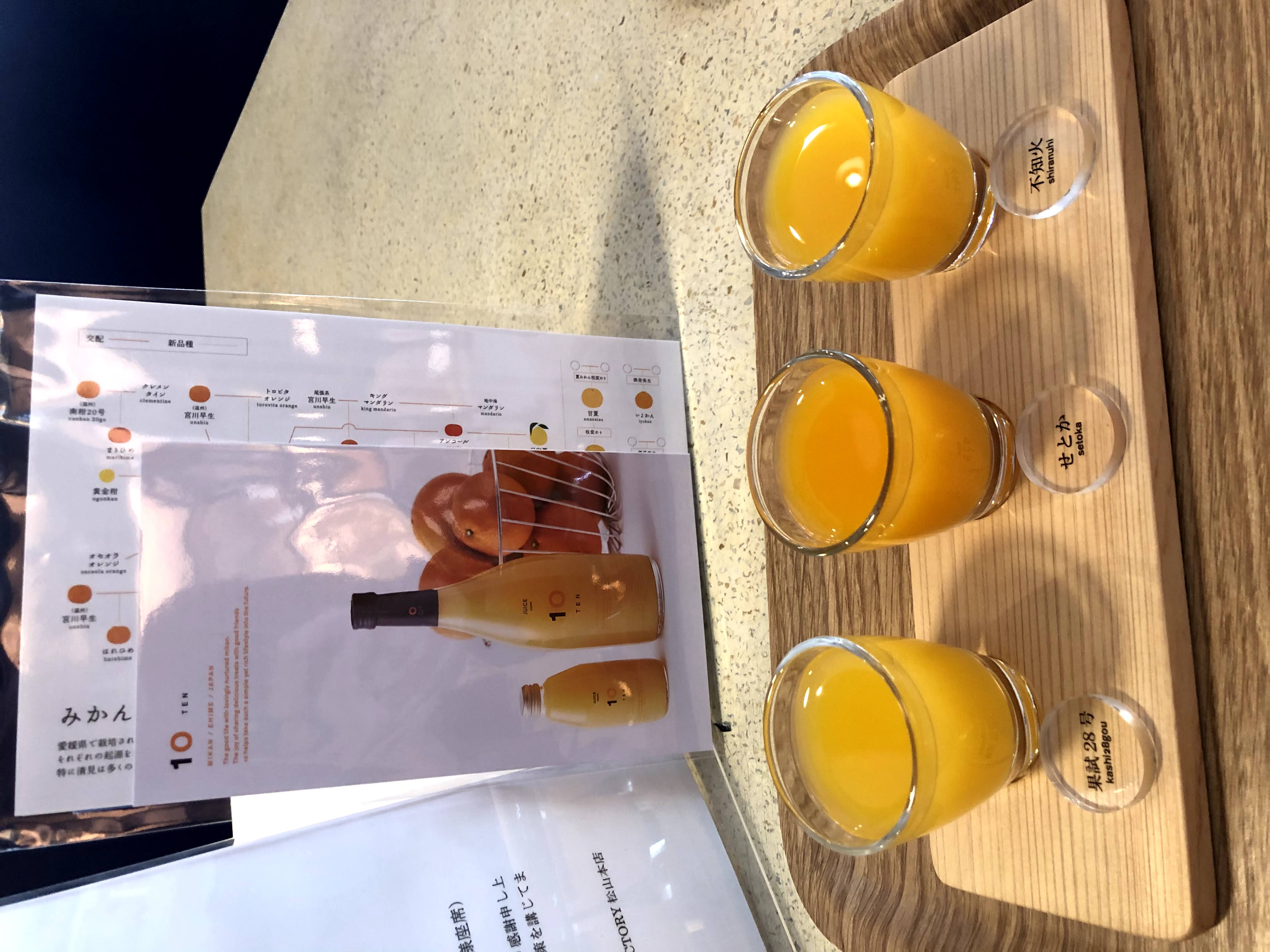 The different mikan (みかん mandarin oranges) juices are differentiated by their levels of sweetness, sourness, and acidity. (Image credit: Jeremy Jee)