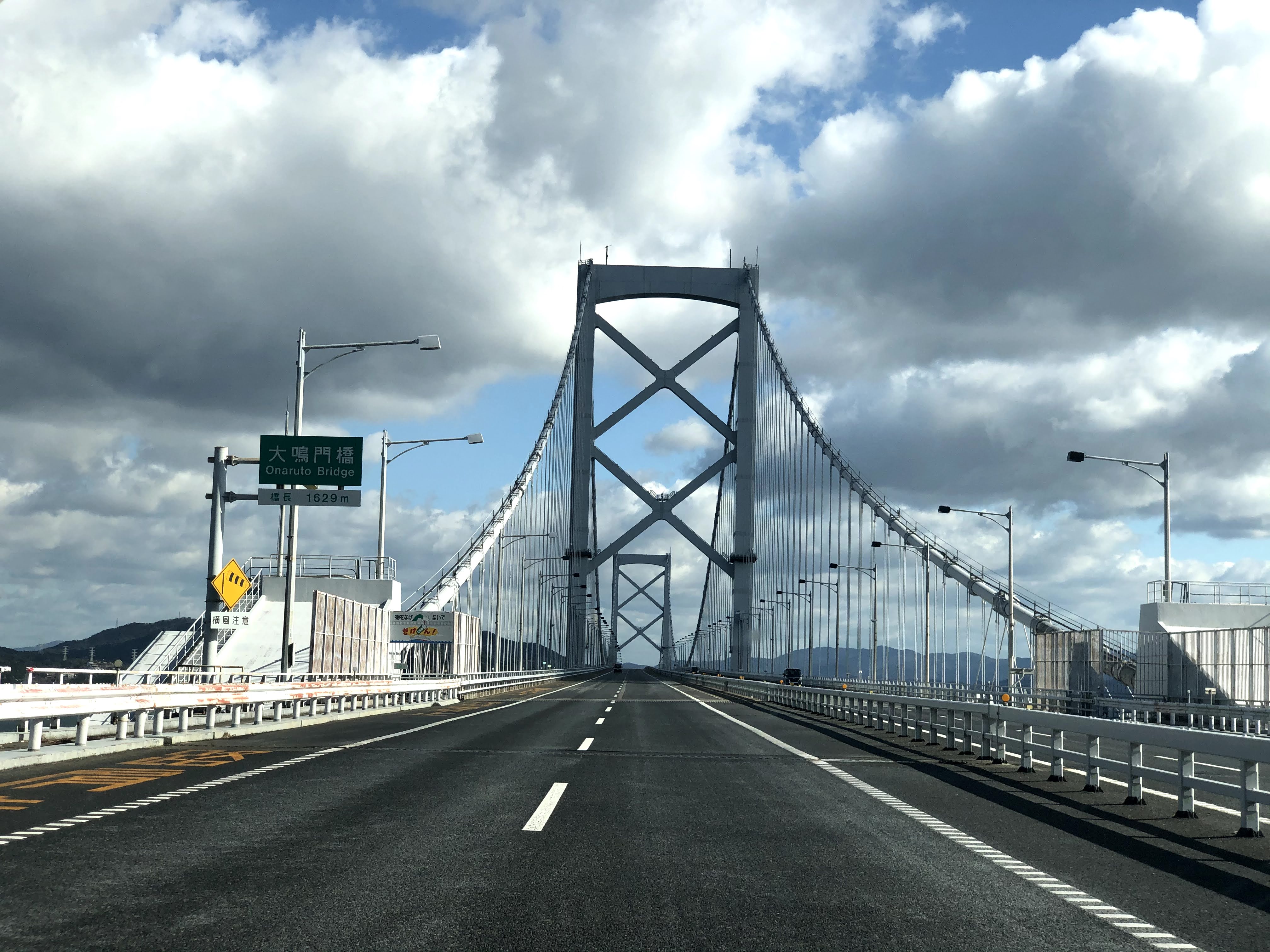End your road trip by driving across the Onaruto Bridge (大鳴門橋 Ōnaruto-kyō), above the whirlpools, through Awaji Island, across the Akashi Kaikyō Bridge (明石海峡大橋 Akashi Kaikyō Ōhashi), one of the longest suspension bridges in the world, and into Kobe.