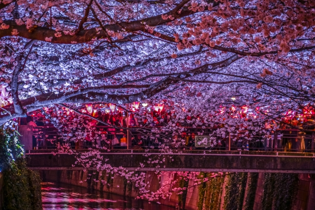 Sakura along the Meguro River at night. (Image credit: photoAC)
