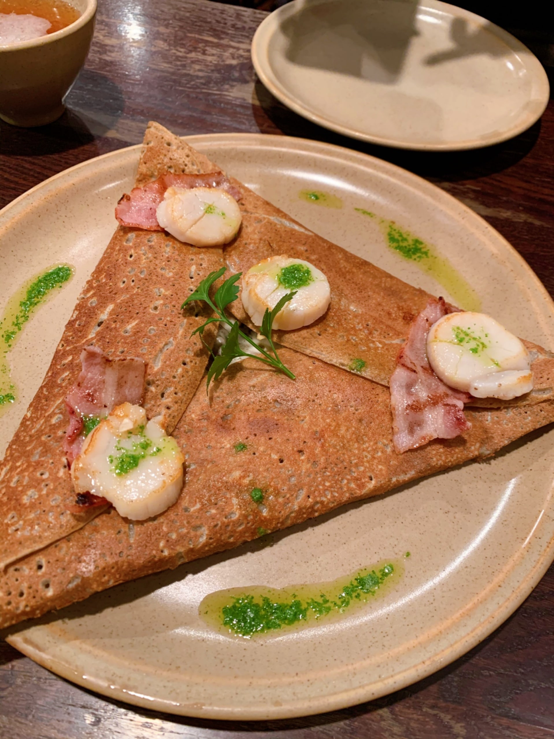 Savoury scallop and bacon crepe. (Image credit: Winnie Tan)
