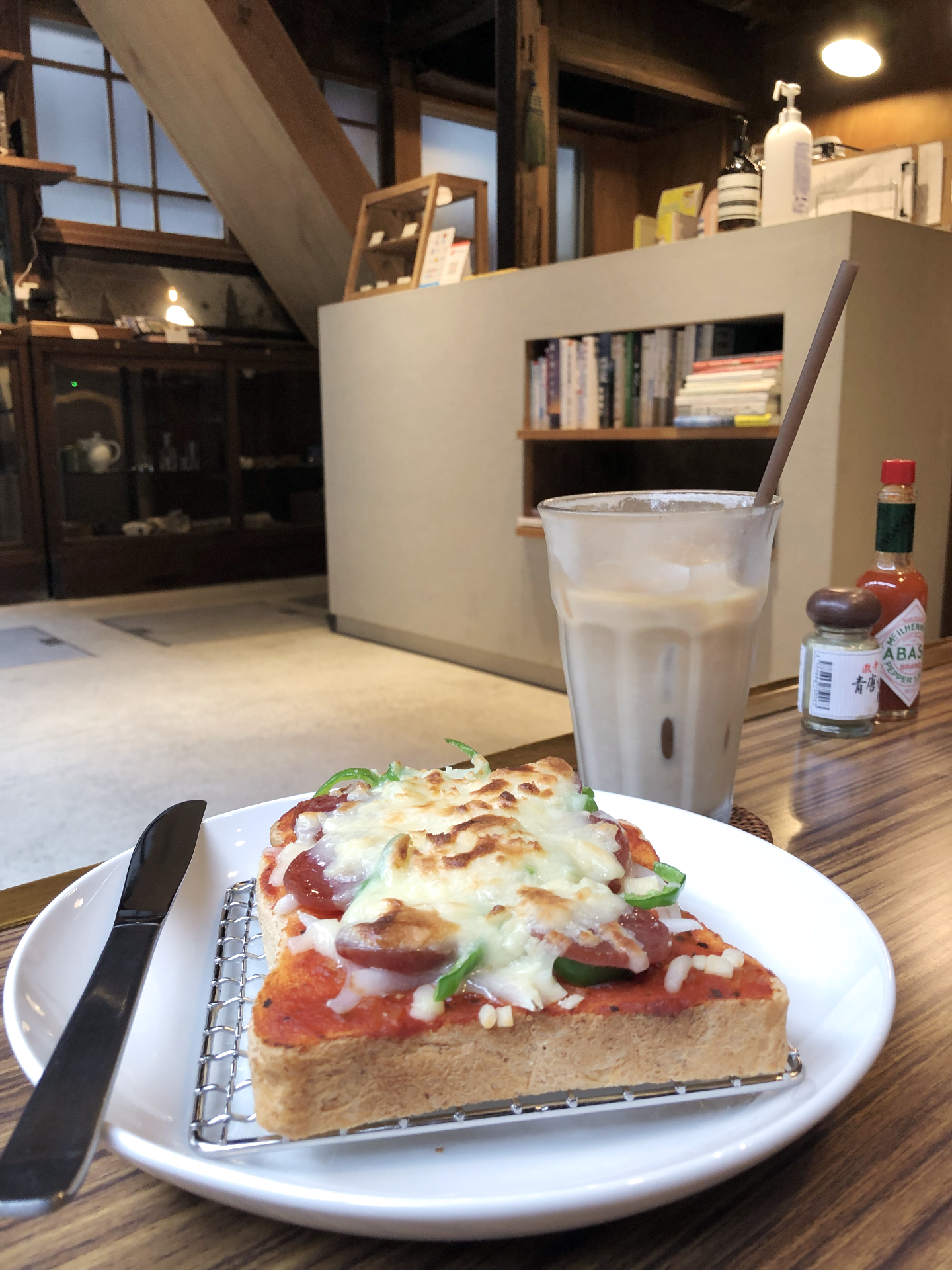 My personal recommendation is the cafe’s signature Pizza Toast complemented by a cup of hot chocolate. The Pizza Toast (¥550) is made from thick shokupan (食パン) that is crispy on the outside and fluffy on the inside, and when you top it with the local green pepper, the taste is exquisite. Even more impressive is the hot chocolate (¥550), a positively life-changing cup with its richness, mild sweetness, and deep taste of chocolate that makes me reconsider ever getting a hot chocolate from any other establishment.