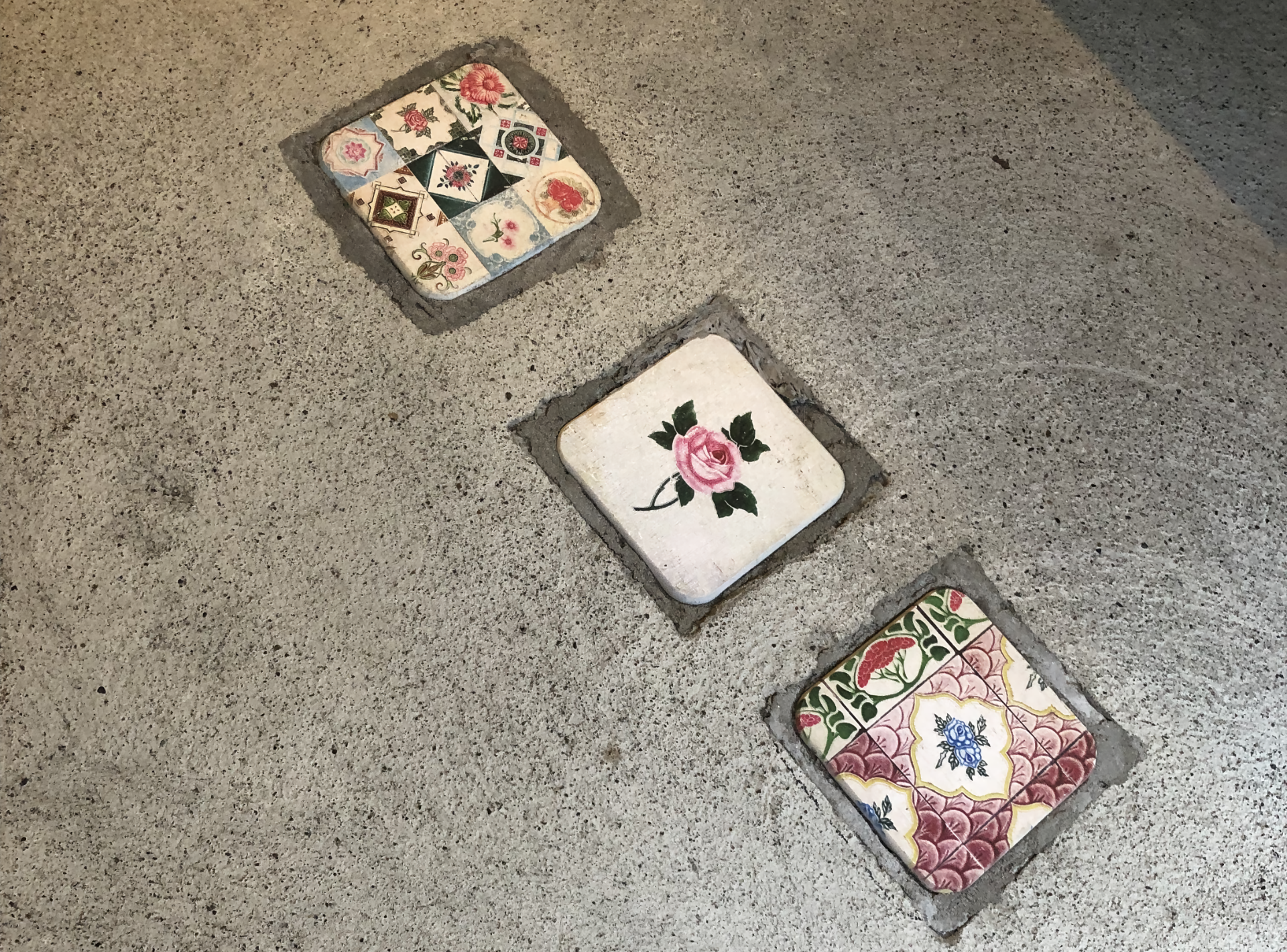These cute tiles embedded in the floor are actually Peranakan tiles, an unexpected rare find in Japan. (Image credit: Jeremy Jee)