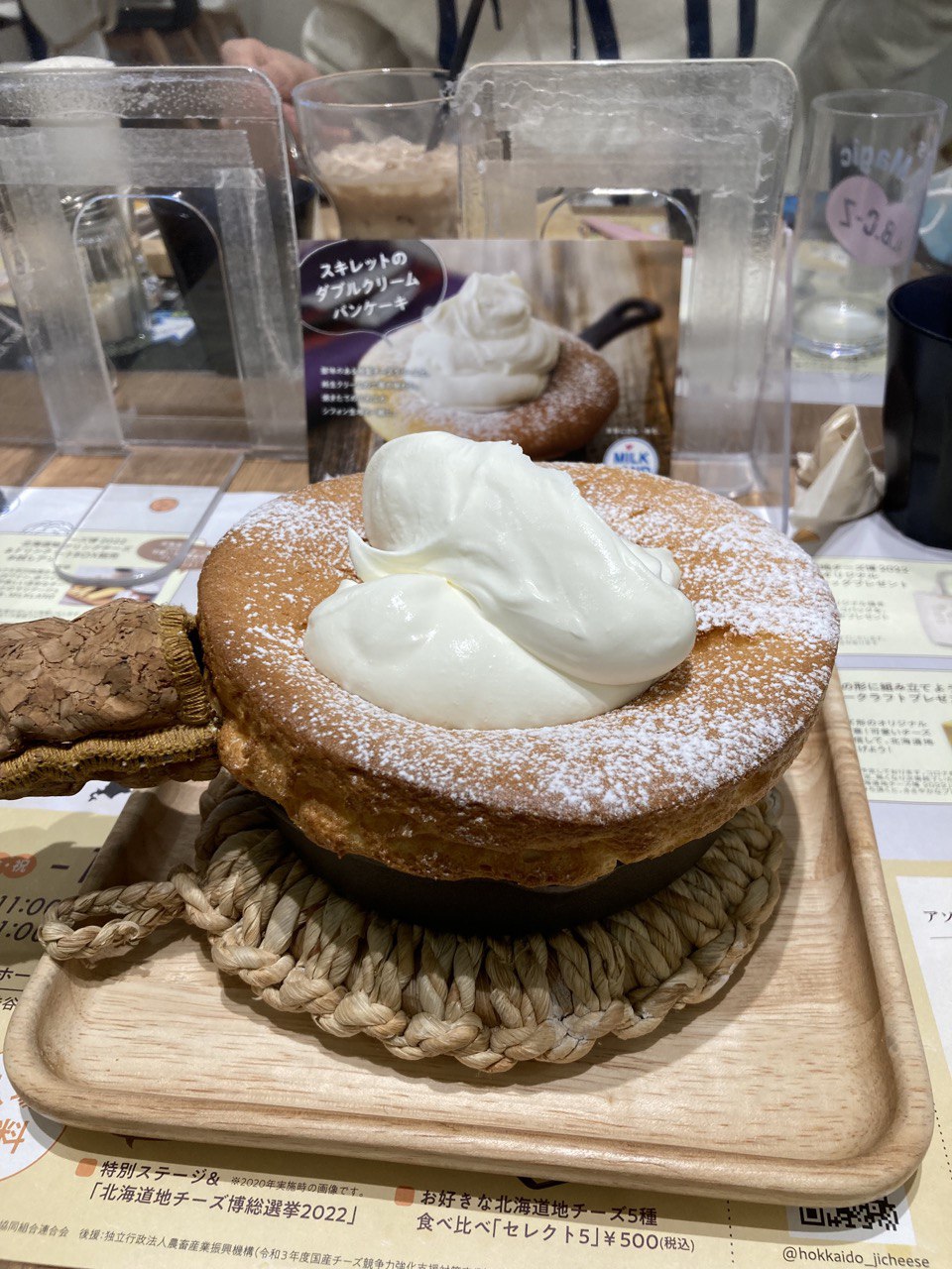 For lovers of Hokkaido (北海道 Hokkaidō) milk, Milkland Hokkaido→Tokyo (ミルクランド北海道→東京) gathers the best under one roof with a cafe, a desserts takeaway counter, and a small grocer. You can get a sampler platter of milk for ¥190, consisting of three different types of milk from different farms. I personally recommend the taste platter that focuses on taste, because it has a rich creaminess and milky taste that really makes the taste stand out from ordinary milk. If you’re dining in at the cafe, their signature dish is the Secret Double Cream Pancake (¥990) which features a souffle pancake filled with cream cheese and yoghurt, topped with fresh cream. You can also get a variety of milk-based products at the grocery including milk jam, cheese, cheesecakes, yoghurts and more.
