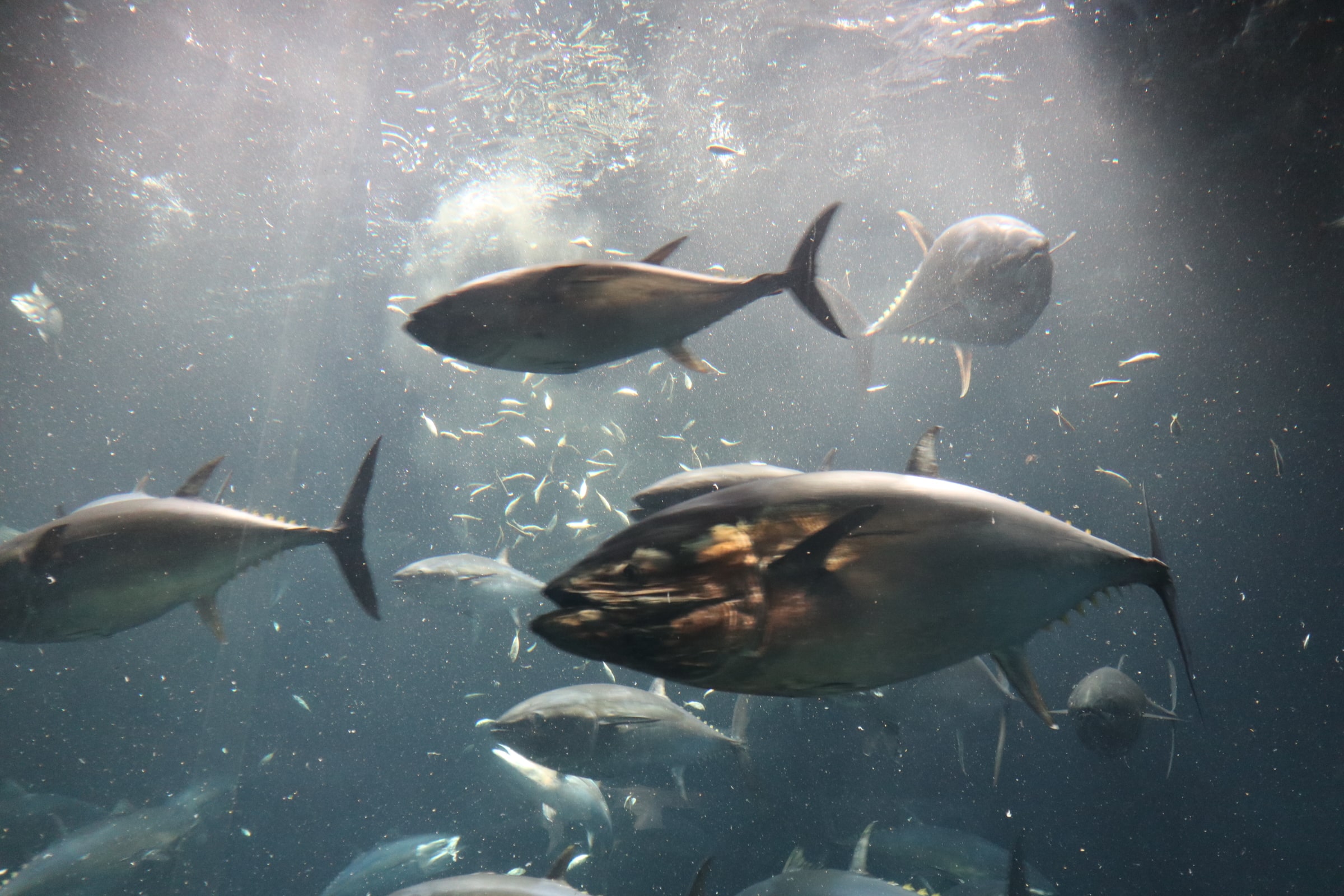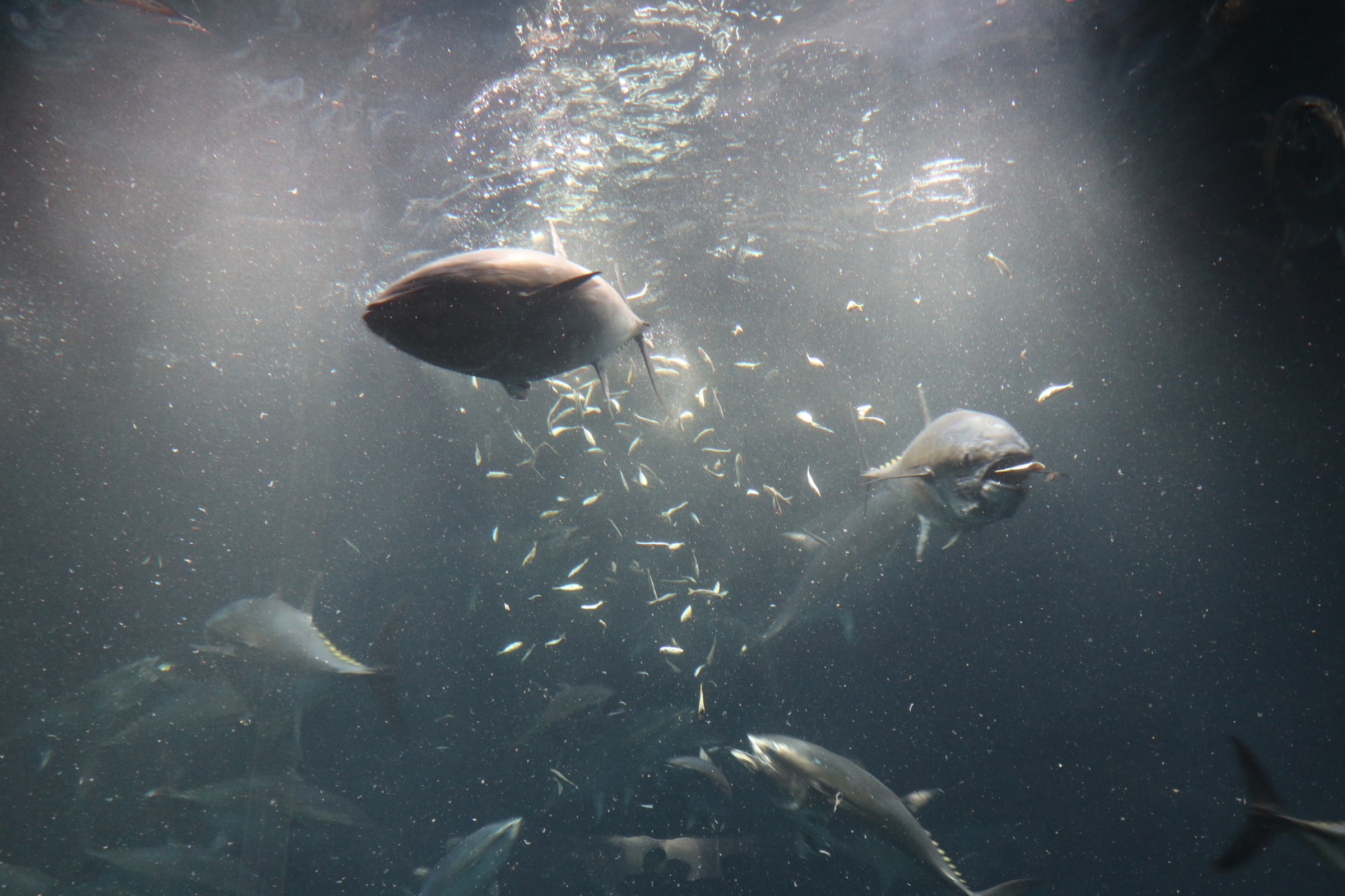 This was my very first time seeing live swimming tuna at such a close distance. I was also very surprised to see that the bluefin tuna has a silvery-blue skin that somewhat reflects light. Tuna looks so different from salmon! Prior to this, I’ve only seen tuna at sushi stores and the supermarket. In Japan, sometimes, wet markets or hotels have maguro kaitai (マグロ解体) shows, which are live demonstrations of tuna filleting. They are usually very popular and have a lot of people gathered around to watch, so seeing the live fish at such a close distance in the aquarium was a very refreshing experience.
