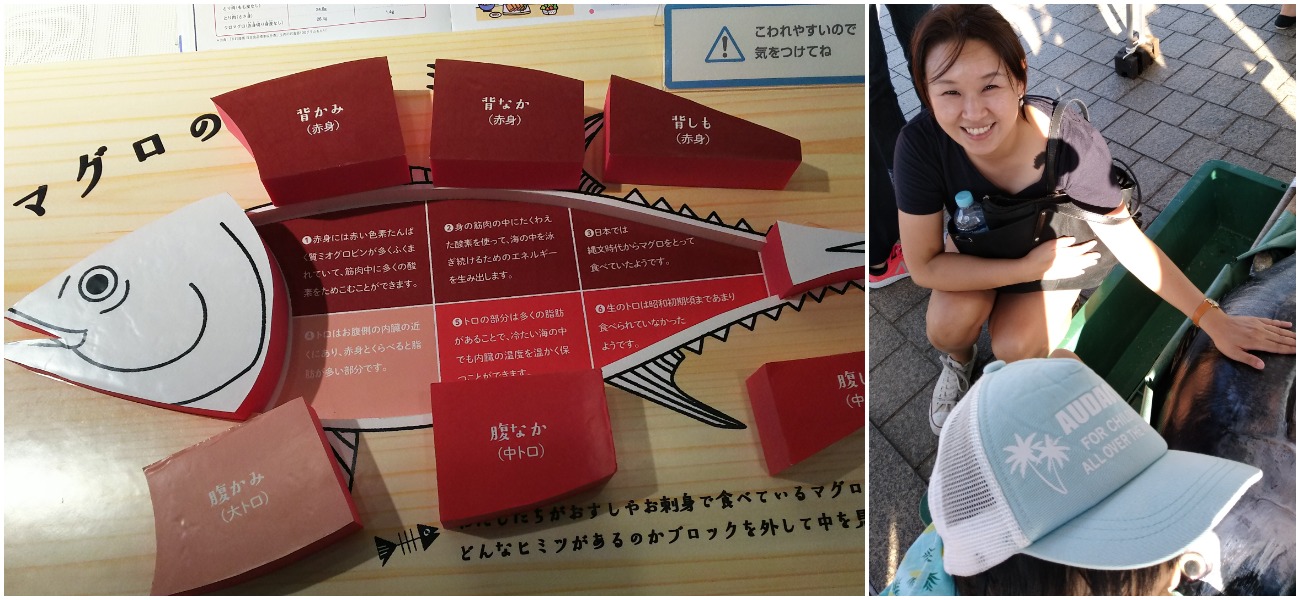While it’s fun to observe the tuna fish, visitors will also get to learn more about the tuna. For instance, one of the exhibits shows the various parts of the tuna in blocks. There are actually various parts of the tuna which we can choose if we were to order tuna sashimi. There are mainly three grades of tuna: akami (赤身), chūtoro (中トロ), and ōtoro (大トロ). Akami is the leanest while otoro is the fattiest, which is also known as the A5 wagyu equivalent of fish. It melts in your mouth when you eat it. Some people prefer chutoro as it is not as fatty and you can have more slices of it. My favourite happens to be chutoro as well, since it has a nice balance between fish fat and meat.