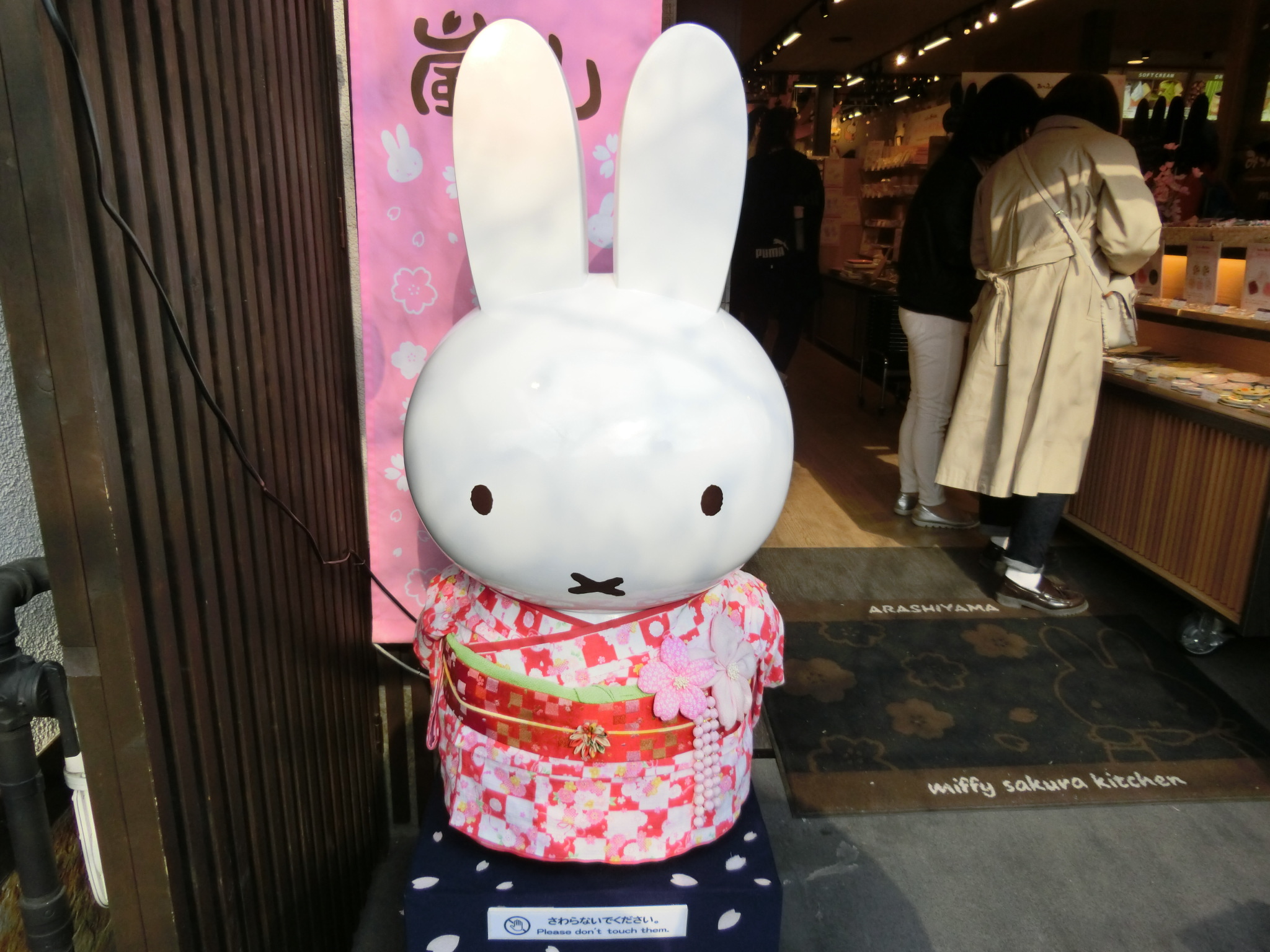 First, you will find Miffy Sakura Kitchen (みっふぃー桜きっちん) while visiting Arashiyama. As seen above, a kimono-clad Miffy doll will welcome you at the entrance of the shop. Once you enter, you will see many Miffy merchandises and snacks, as well as a bakery called Miffy Sakura Bakery (みっふぃー桜べーかりー) serving a variety of bread and pastries with adorable Miffy motifs.