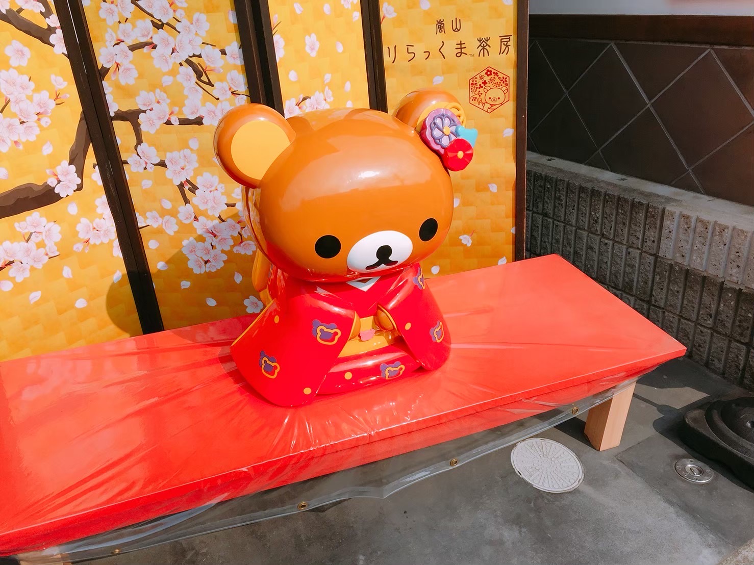Next,, be greeted by another cute kimono-wearing character—this time, it’s the adorable Rilakkuma seated right at the entrance of Rilakkuma Sabo (リラックマ茶房)! Located in Arashiyama as well, you can simply take a seat and snap pictures with Rilakkuma. This photo spot with Rilakkuma is so popular among visitors that many would get in line just for this cute photo opportunity! Thus, you are considered lucky if you manage to take pictures with this Rilakkuma!