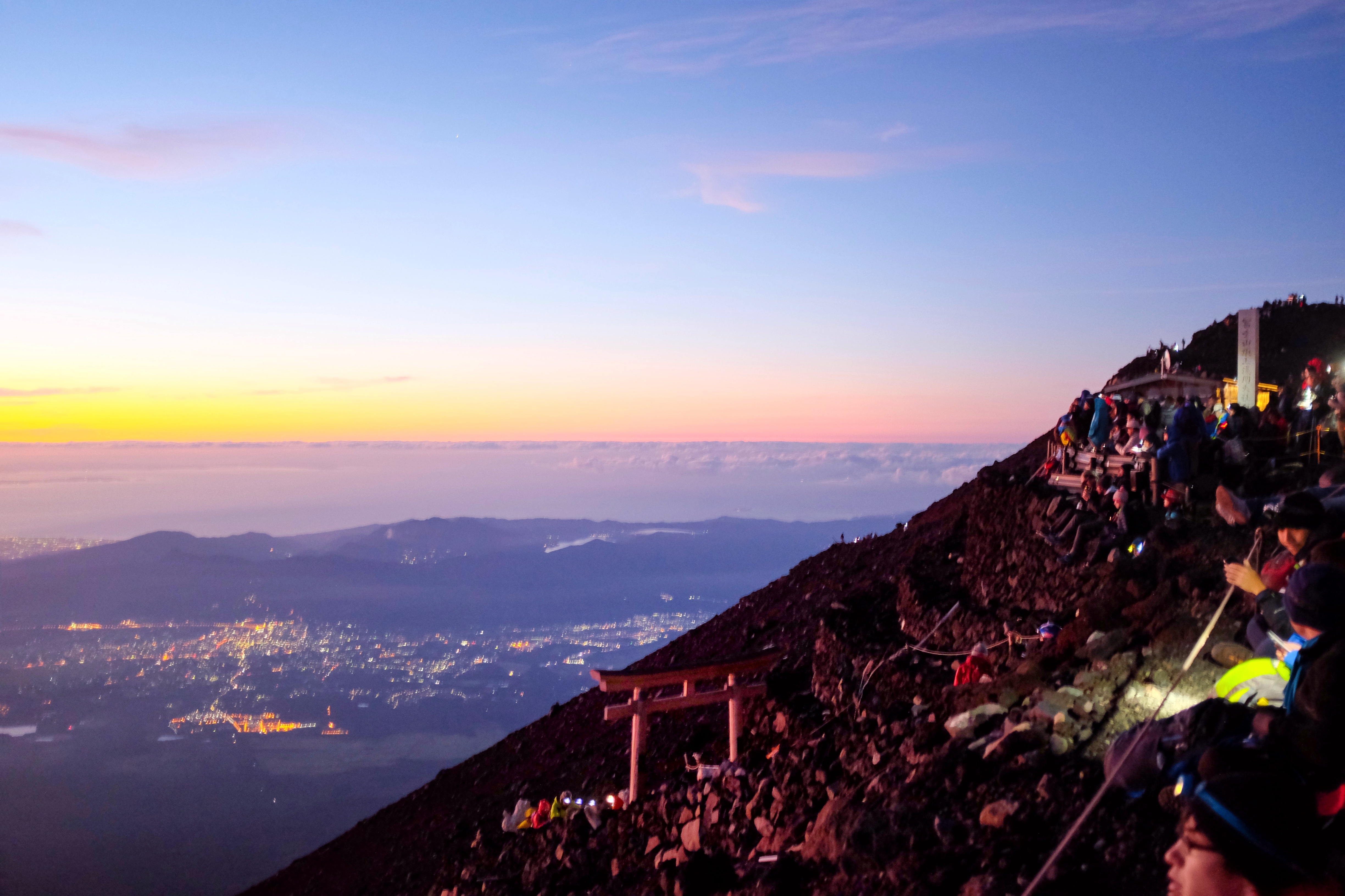Climbers who secured their spots waiting for sunrise at 5am. (Image credit: JAL / Sandy)