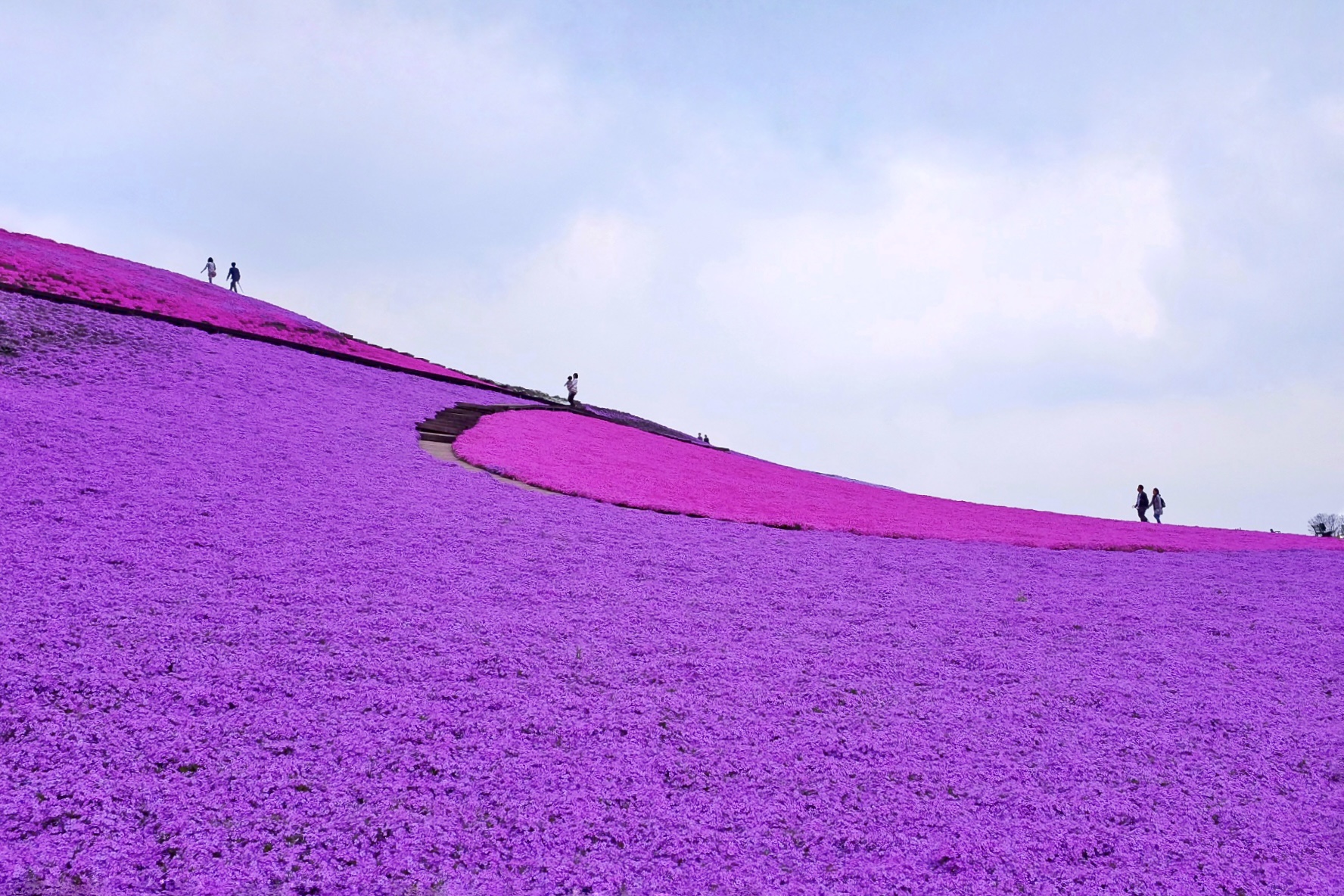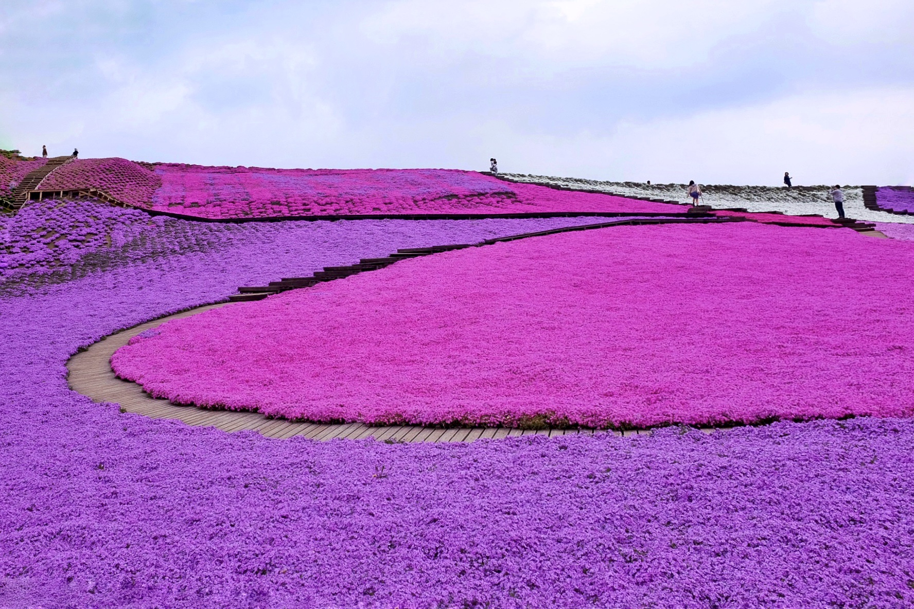 Shibazakura fields are separated by boardwalks, where people can stop to take photos with this stunning backdrop, or have a closer look at the shibazakura flowers. (Image credit: JAL / Sandy)