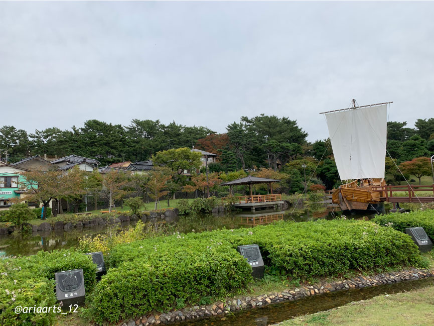 If you are looking for a place with no entrance fee, the Hiyoriyama Park (日和山公園 Hiyoriyama Kōen) is another short 5-minute walk from the Sanno Club. Here linger the memories of Sakata as a strong port city, as it is where you can find Japan’s oldest wooden hexagon lighthouse still standing tall and strong, as well as a replica of a kitamae-bune (北前船 Northern-bound ships). Kitamae-bune was a type of cargo ship used actively during the 18th and 19th centuries and Sakata owed much of its prosperity as a port to these vessels.