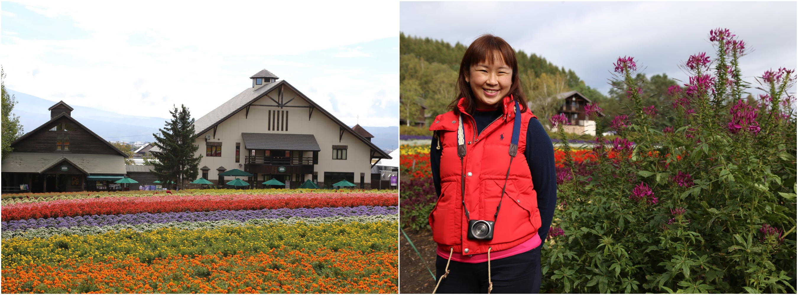 From left to right: Fresh lavender at Farm Tomita, seasonal flowers in full bloom, my happy self seeing that the flowers were still colourful. (Image credit: Wanping)
