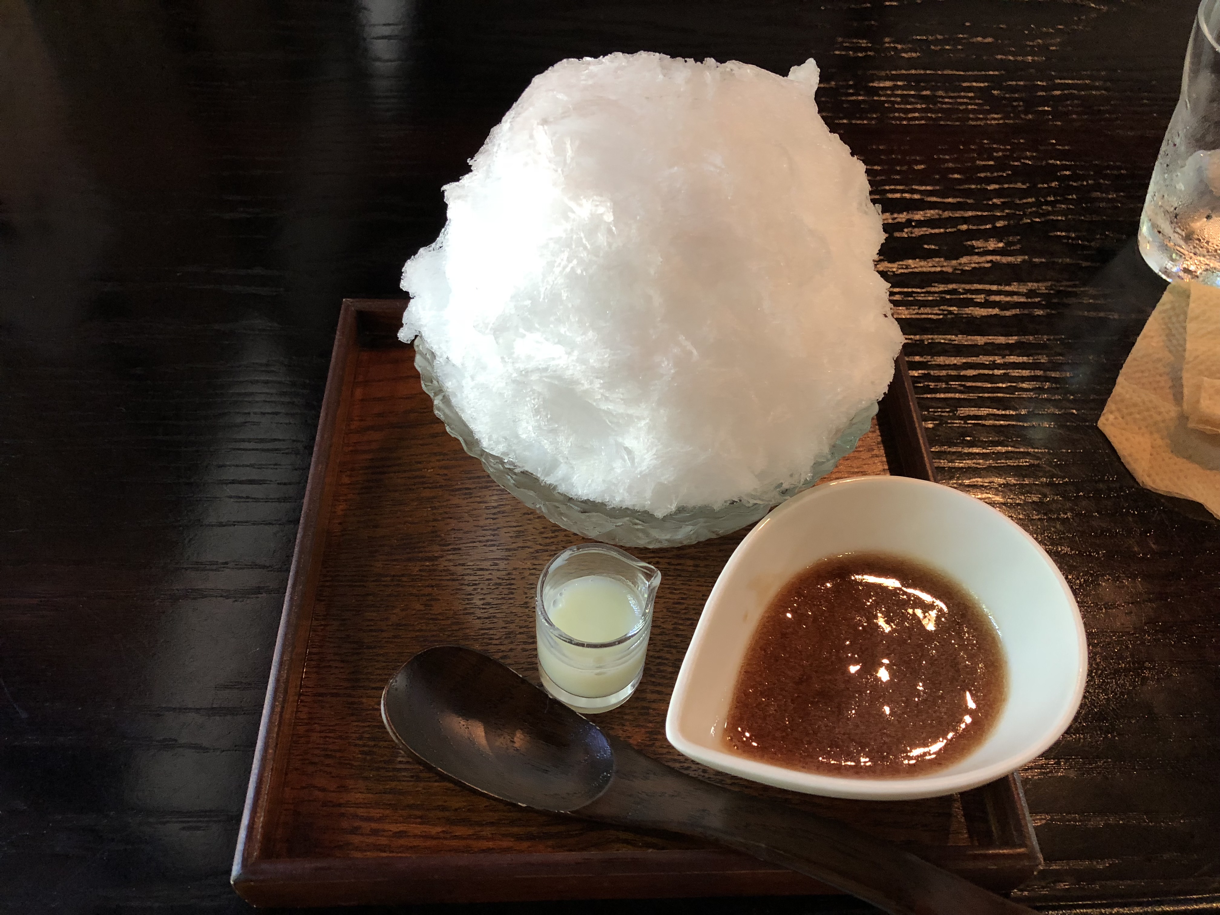 To beat the summer heat that plagues late-July Japan, I stopped by a local cafe specializing in kakigōri (かき氷 Shaved ice) called “Tachi-Ki (たち李)”. From the looks of it, you can already tell that effort and heart had been put into preparing this mouthwatering dessert.