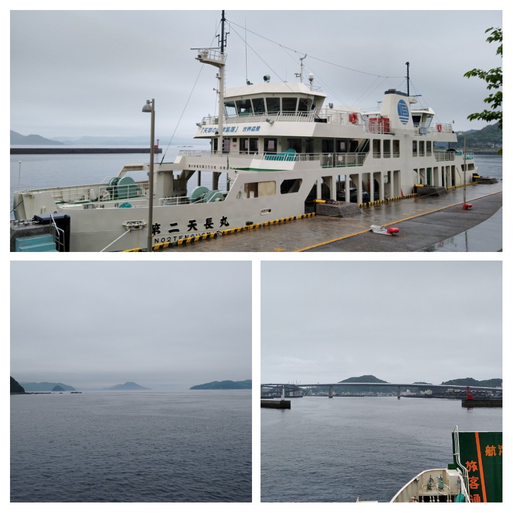 The ferry took me and my scooter across the Shiranui Sea (不知火海 Shiranui-kai), the inland sea that separates the western Amakusa Islands (天草) from the main island of Kyushu. It was a little rainy but the view of the Shiranui Sea along the way was nevertheless spectacular.