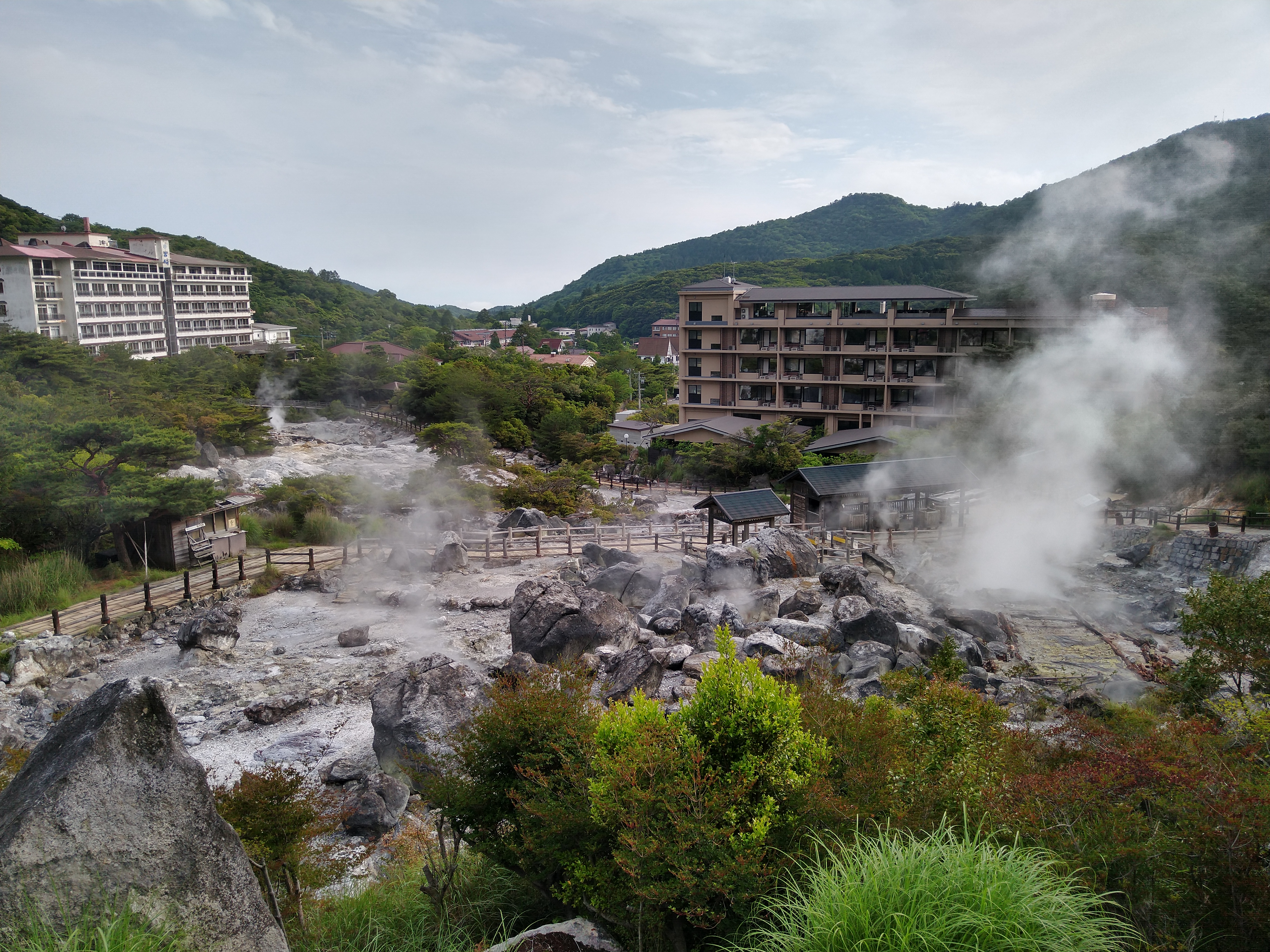 In the middle of the Shimabara Peninsula lie the mountains of Unzen (雲仙), a geothermally- heated hot spring nestled amidst its heights. Unzen was the site of cruel Christian persecution in the Edo Period, but on a happier note, Unzen Onsen is also the first national park ever designated in Japan. Plenty of onsen resorts dot the area, and thick steam smelling of sulphur and acid billow out from the rocky Jigoku (地獄 hell) springs.