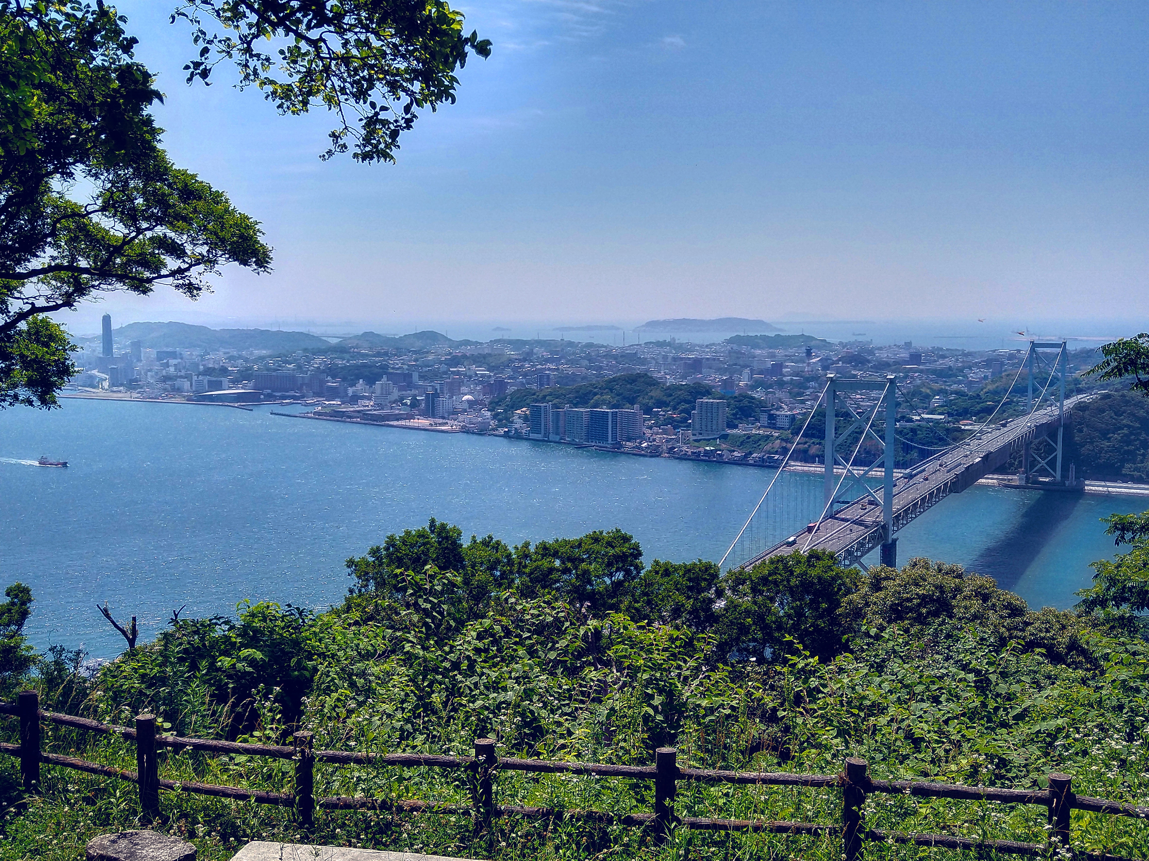 At one of the many observation decks of Mekari Park (和布刈公園), gazing past the Shimonoseki Strait over the Kanmon Bridge (関門橋 Kanmon-kyō), I beheld the landmass that was to be the next leg of my momentous journey.