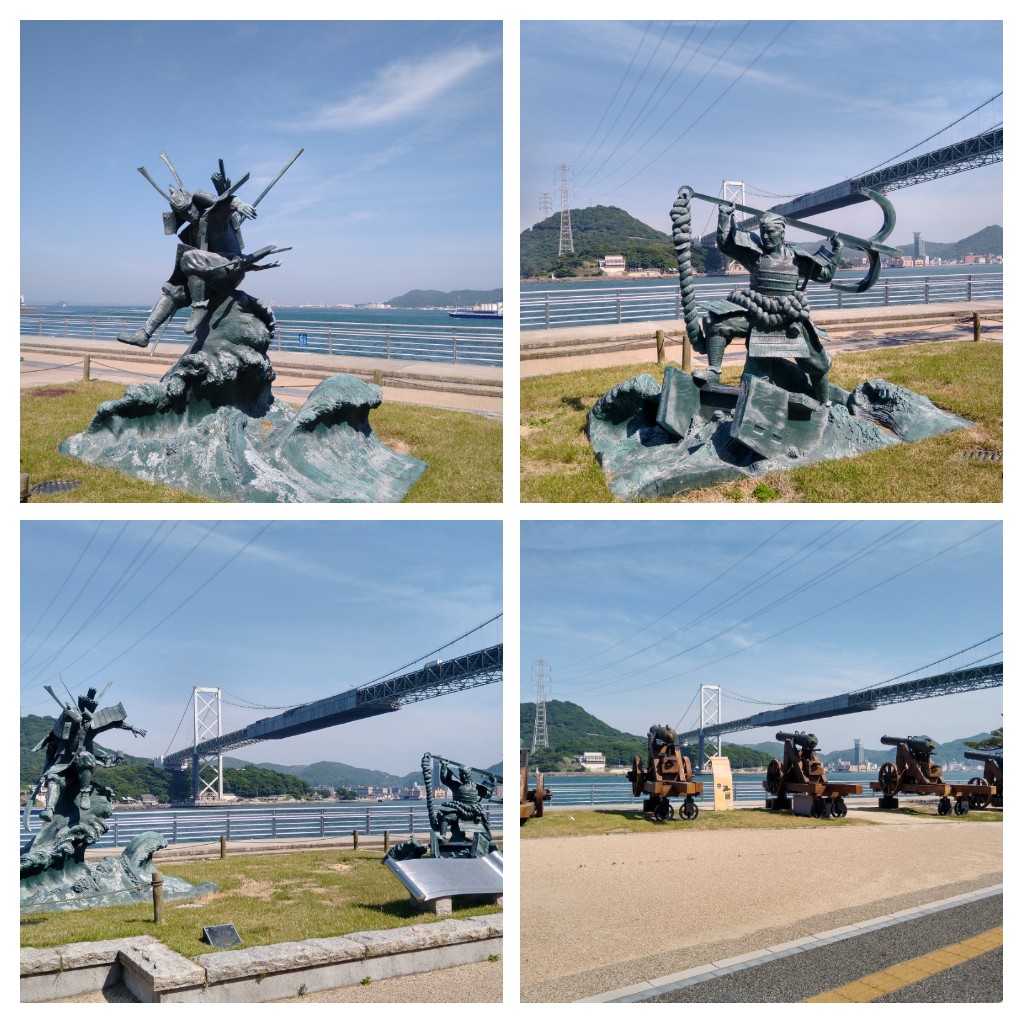 Across the road right in front of me was a cluster of monuments depicting historical events that took place at this very location. The bronze statues represented the Minamoto and Taira clans, belligerents of the Genpei War (源平合戦 Genpei-kassen) which took place in the 12th century. The final battle of that conflict was decided at Dan no Ura (壇ノ浦), the waters within the strait. Not too far away were replicas of western-designed cannons pointing out to sea. These emplacements depict the last engagement of the Shimonoseki Campaign which took place in 1864 between Yamaguchi, then known as Choshu Domain (長州藩 Chōshū-han), and Britain, the Netherlands, France and the United States.