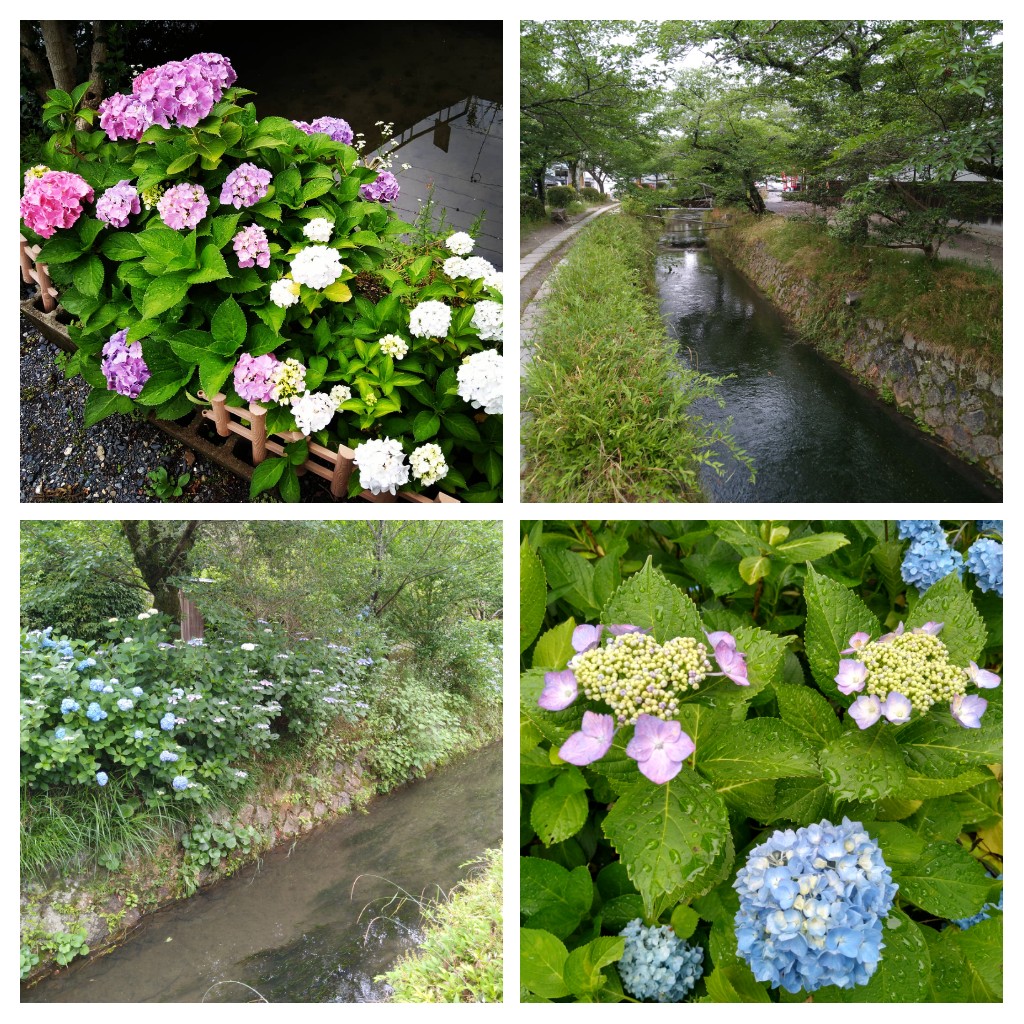 Also in the area is The Philosopher's Path (哲学の道 Tetsugaku no michi), a stretch of pedestrian road alongside a river where several cherry blossom trees stand, ready to display their beautiful pink colours in spring. Rumour has it that it was named so because Nishida Kitaro (西田幾多郎), a distinguished philosopher and Kyoto University professor, paced along this very path for his dose of meditation. During this rainy season, however, the walkway is instead adorned with colourful hydrangeas.