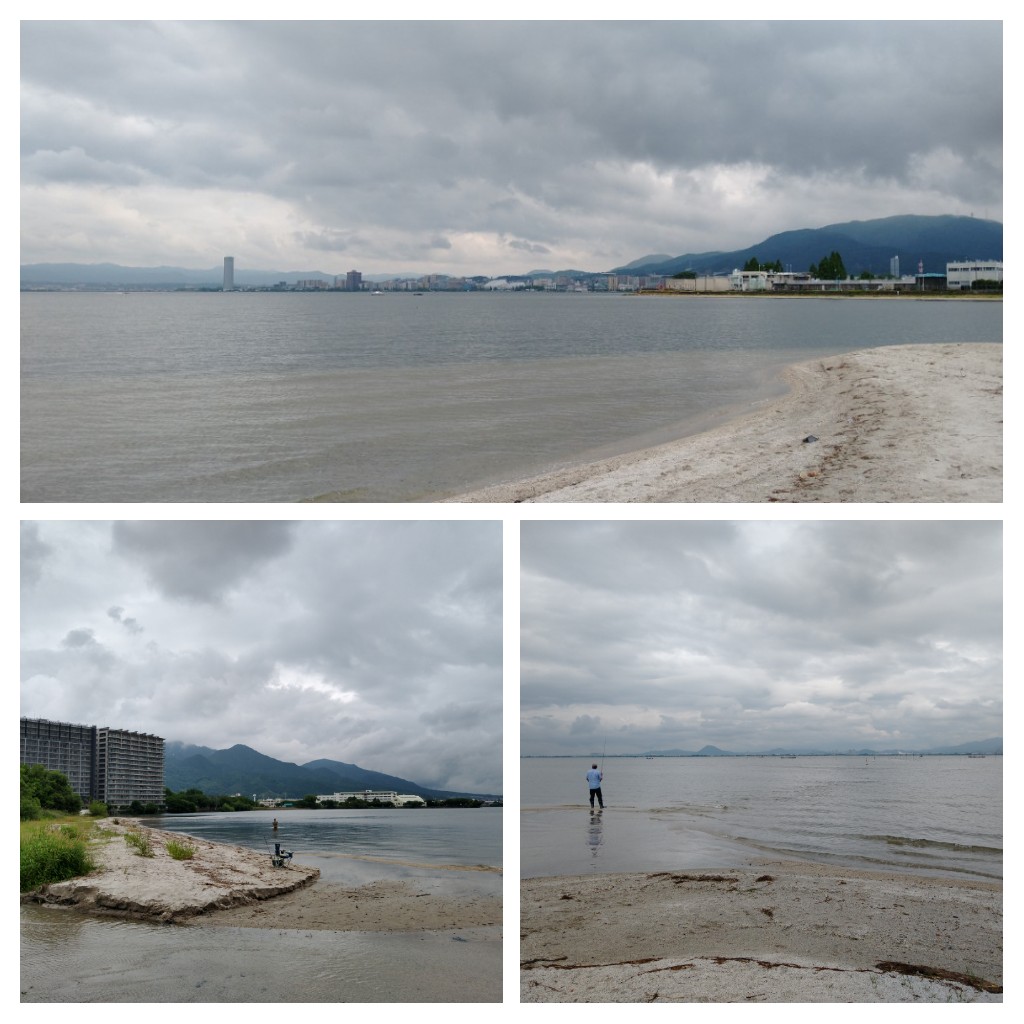 Shiga is, of course, well known for being the site of Japan’s largest lake, Lake Biwa (琵琶湖 Biwako). The rain had let up a little bit, so I took a moment to refuel and admire the view. As I began tracing a clockwise path around the west bank, I was flanked by a splendorous combination of Lake Biwa to my right and the Hira mountain range (比良山地 Hira-sanchi) to my left.