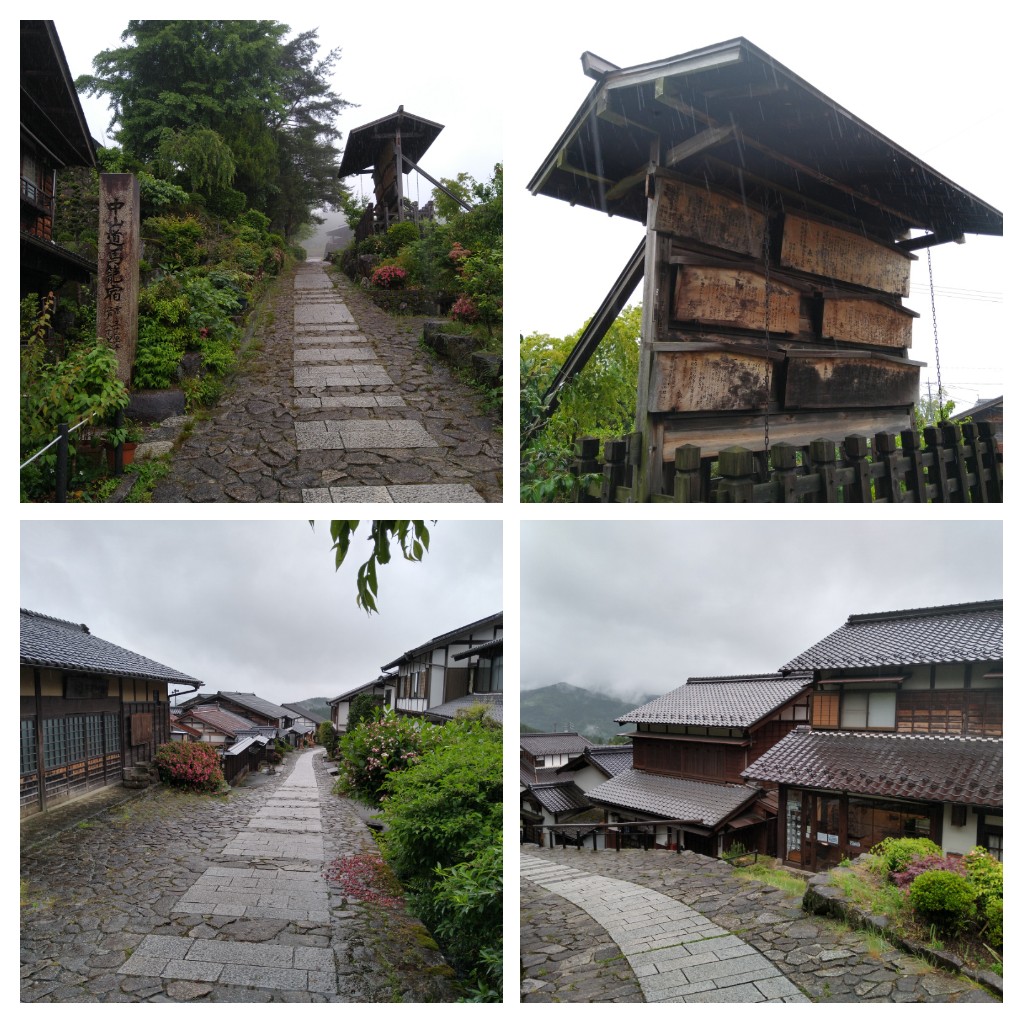 Grey clouds and intermittent rain kept me company as I continued on through the Nakasendo. By then I had entered Nagano Prefecture and was deep in the Kiso Valley (木曽路 Kisoji), a narrow ingress carved out by the Kiso River (木曽川 Kiso-gawa) on the west side of the central alps. No words could adequately describe the sense of awe I felt as I passed through such amazing scenery, and I struggled to do it justice with my phone camera amidst the dreary weather. Noting that the JR Chuo Line runs through this valley, I keenly await the day when I can ride a local train to take in all these sights once more at a more leisurely pace.