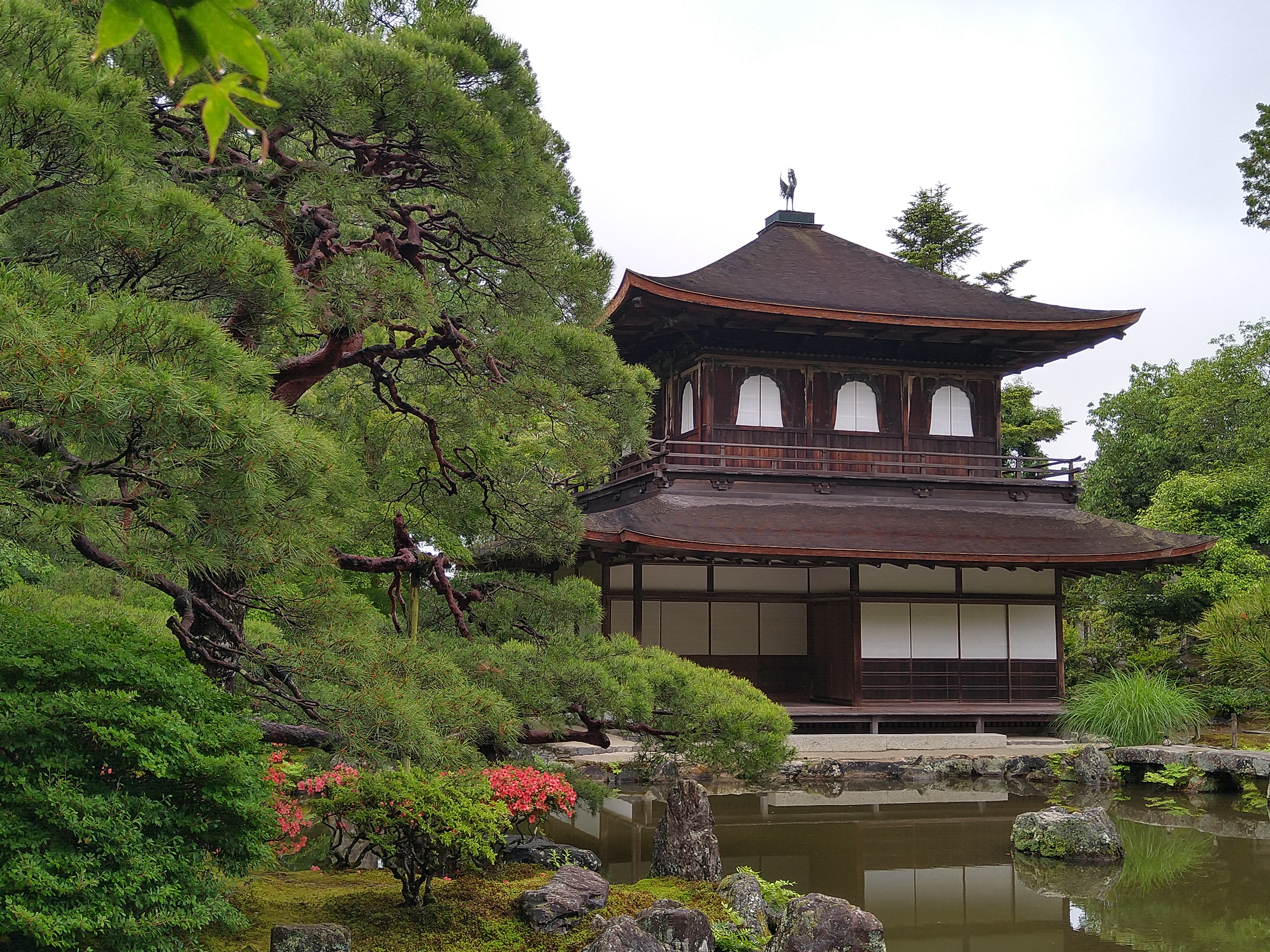 I started off the next day bright and early to visit one of Kyoto’s famed attractions located nearby. Often overshadowed by its more glittery sibling the Golden Pavilion (金閣寺 Kinkakuji), the Higashiyama Jisho-ji (東山慈照寺), more commonly known as the Silver Pavilion (銀閣寺 Ginkakuji), was initially planned to be a place of rest and solitude for the Shogun Ashikaga Yoshimasa (足利 義政). After his death, it was converted into a Zen Buddhist temple. Its main building is an amalgamation of several architectural principles stacked atop one another, located on the corner of a meticulously maintained sand garden.