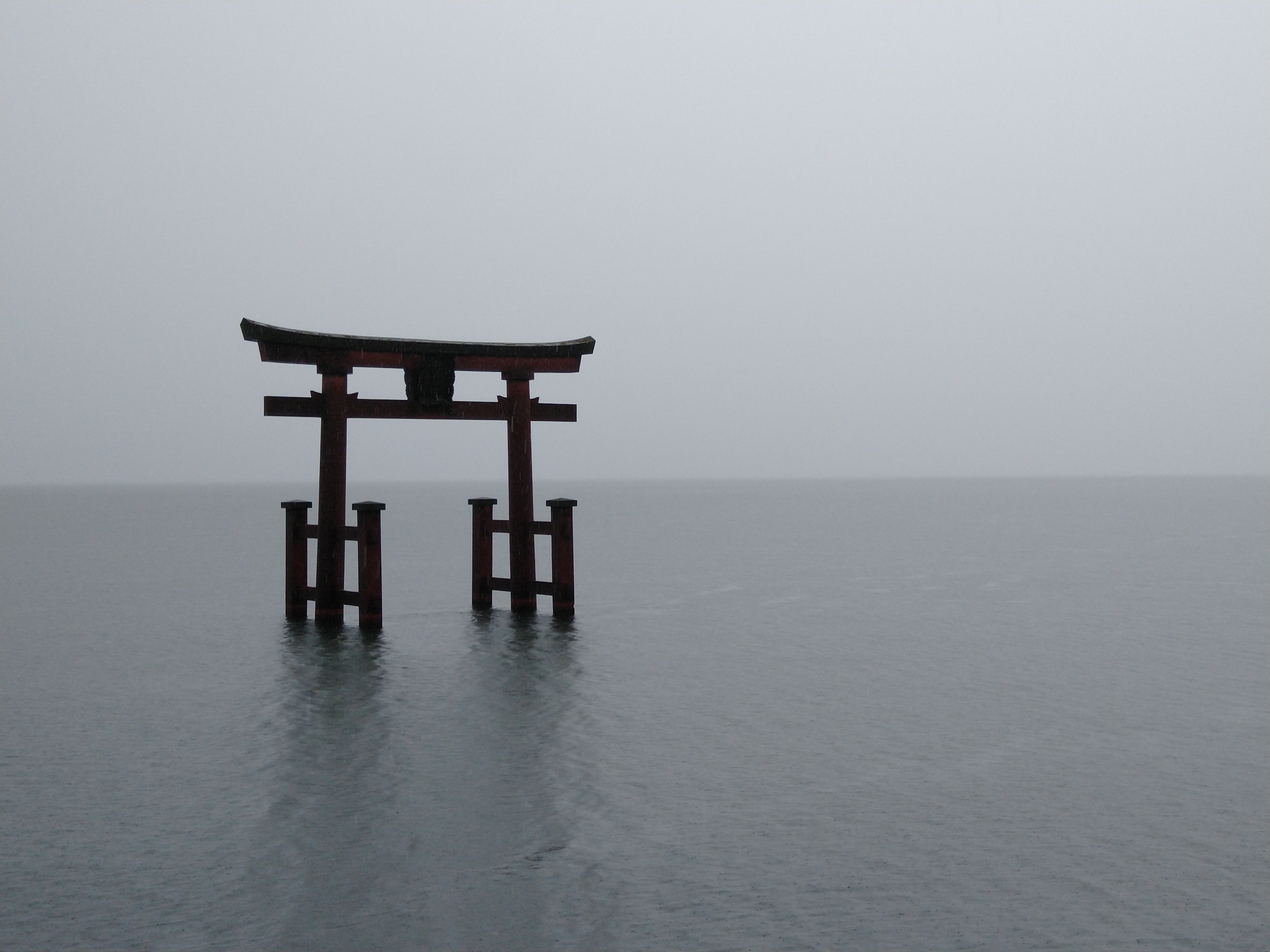Shirahige Shrine (白鬚神社 Shirahige Jinja) is, indeed, hardly a blip in most people’s travel maps, but it stands out within the region for having its torii gate positioned out in the lake itself. The sky had opened up in tremendous downpour by the time I reached the shrine, but that did little to dampen my spirits as I stood before it to pay my respects.