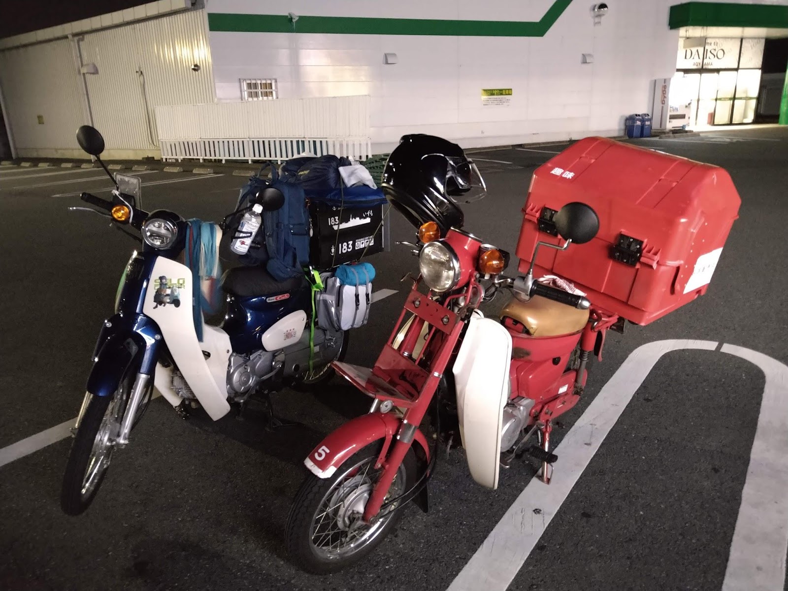 Three hours and 120km into the jaunt, I was in the midst of navigating a series of downhill switchbacks in the pitch darkness of night when I spotted a singular headlamp creeping through the shadows in my rearview mirror. I did my usual thing and allowed the motorcycle behind me to pass, but when I was overtaken I was delighted to find that the vehicle was a Super Cub just like mine. Its rider had apparently seen my sign, and when we were halted side-by-side at a traffic light a few moments later he asked if I would like to stop by for a quick break at the next convenience store with him. So impressed was he at my epic adventure that he treated me to some canned coffee as we made casual conversation and shared in our admiration for the Honda Super Cub scooter series. It felt truly incredible and serendipitous to be able to connect with like-minded people on the road like that.