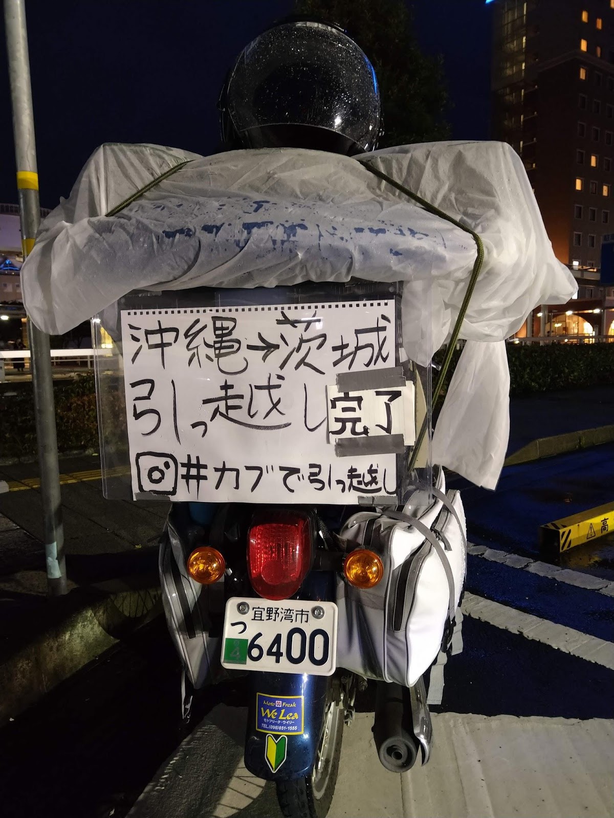 Hitachi City (日立市 Hitachi-shi) is indeed going to be my new home from here on out. My move was finally complete. I parked my scooter briefly in front of Hitachi Station (日立駅 Hitachi-eki), lovingly praised it for carrying me all the way here without any mechanical issues, and updated the sign at the back.