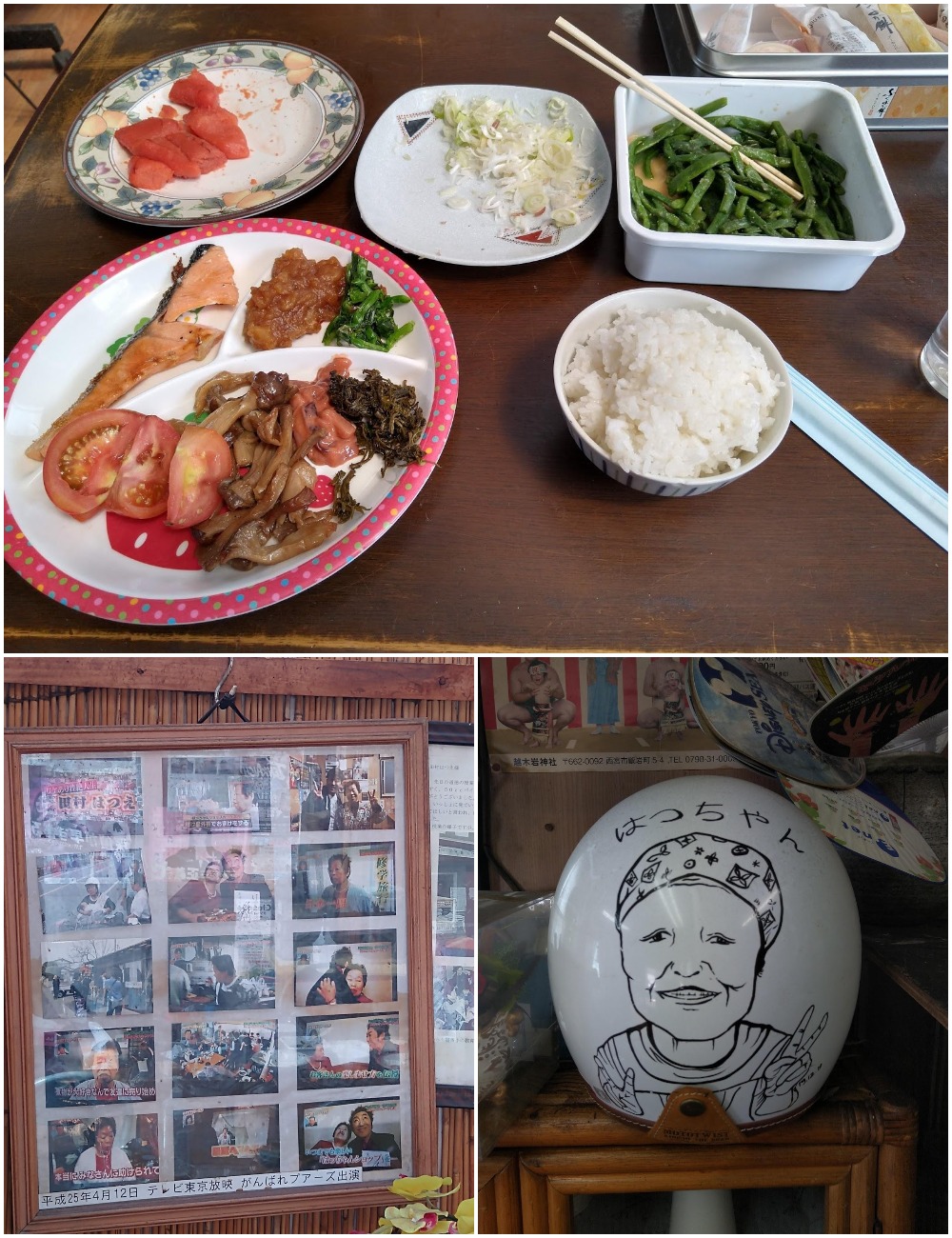 Hacchan Shop (はっちゃんショップ) is run by Hacchan, a spritely granny in her 80s who still has a kick in her step. At the youthful age of 57, after watching all her children grow up and start their own families, she embarked on a trip around the whole of Japan by scooter (just like me, but grander), then started this restaurant five years later. Over the past 17 years she has been running the business on a ¥70,000 monthly deficit by charging patrons only ¥500 for buffet-style meals, all in the name of continuing to spread happiness to others. Thanks to its popularity the shop often sees long lines during lunchtime hours, with customers arriving from all over the country. It isn’t any surprise, given that for such a small amount of money, one can enjoy delicious homemade grub to their heart’s content.
