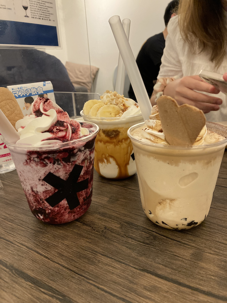 A few of us ordered shakes in different flavours—salty caramel banana, coffee jelly espresso, and blueberry. The fruit ones had the option of being fresh milk shakes (¥600) or yoghurt shakes (¥650). We thought the coffee jelly one tasted quite similar to an espresso frappe, while the caramel one had a pleasant comforting mix of sweet and savoury flavours. Last but not least, the blueberry one was refreshingly sour and sweet, with fresh blueberries topping it.