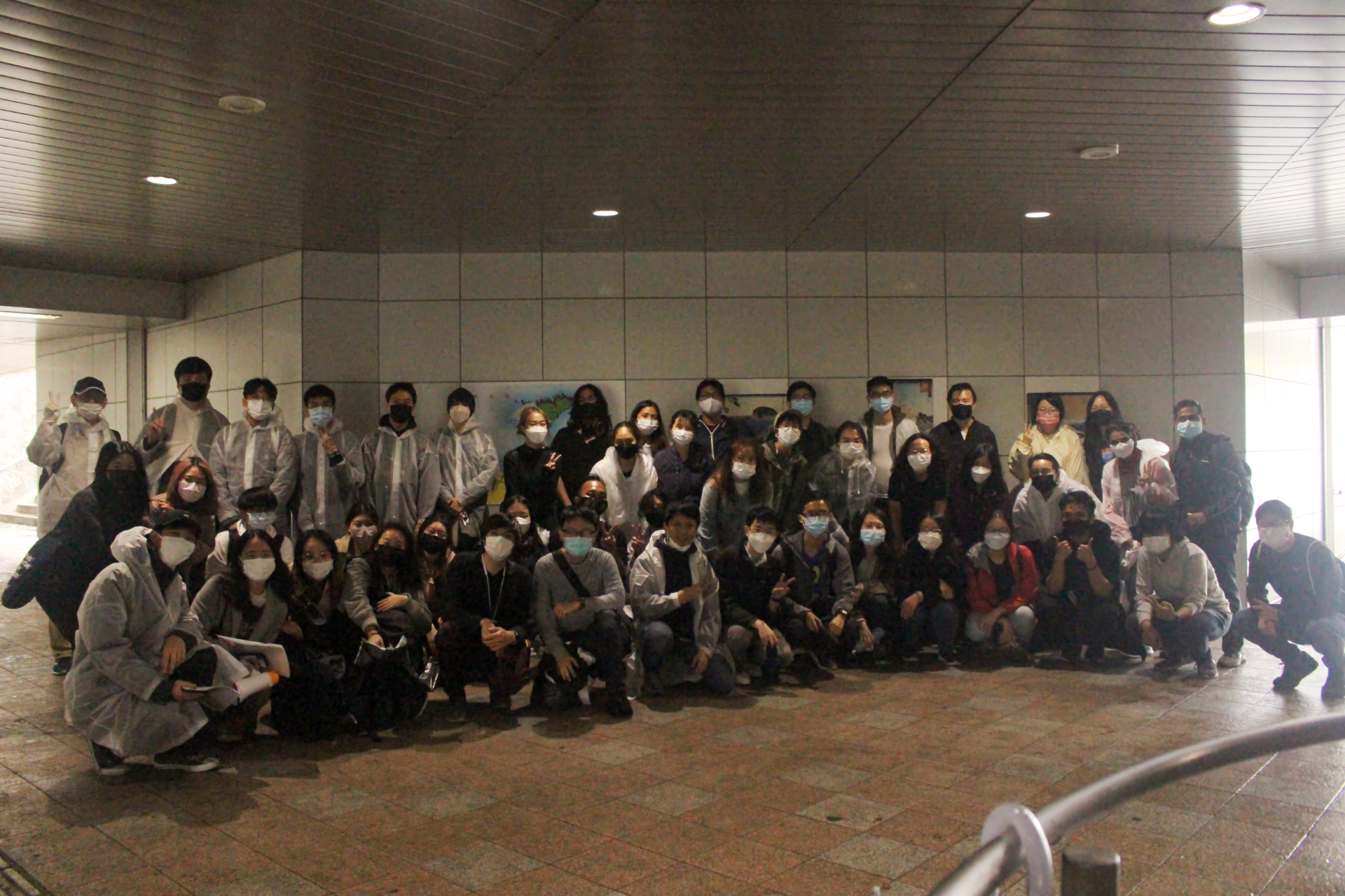 Not for a lack of trying though, our students wanted to try and brave the weather for the sake of giving back to the community. Yet, with winds so strong it broke a number of our umbrellas, and a rain that soaked through even ponchos, there was no choice but to retreat back into the nearby underpass we had gathered in. Thankfully, even within that short span of 10 minutes, 30-40 students can still pick up a sizable amount of trash that was separated and then placed at the bulk disposal point.