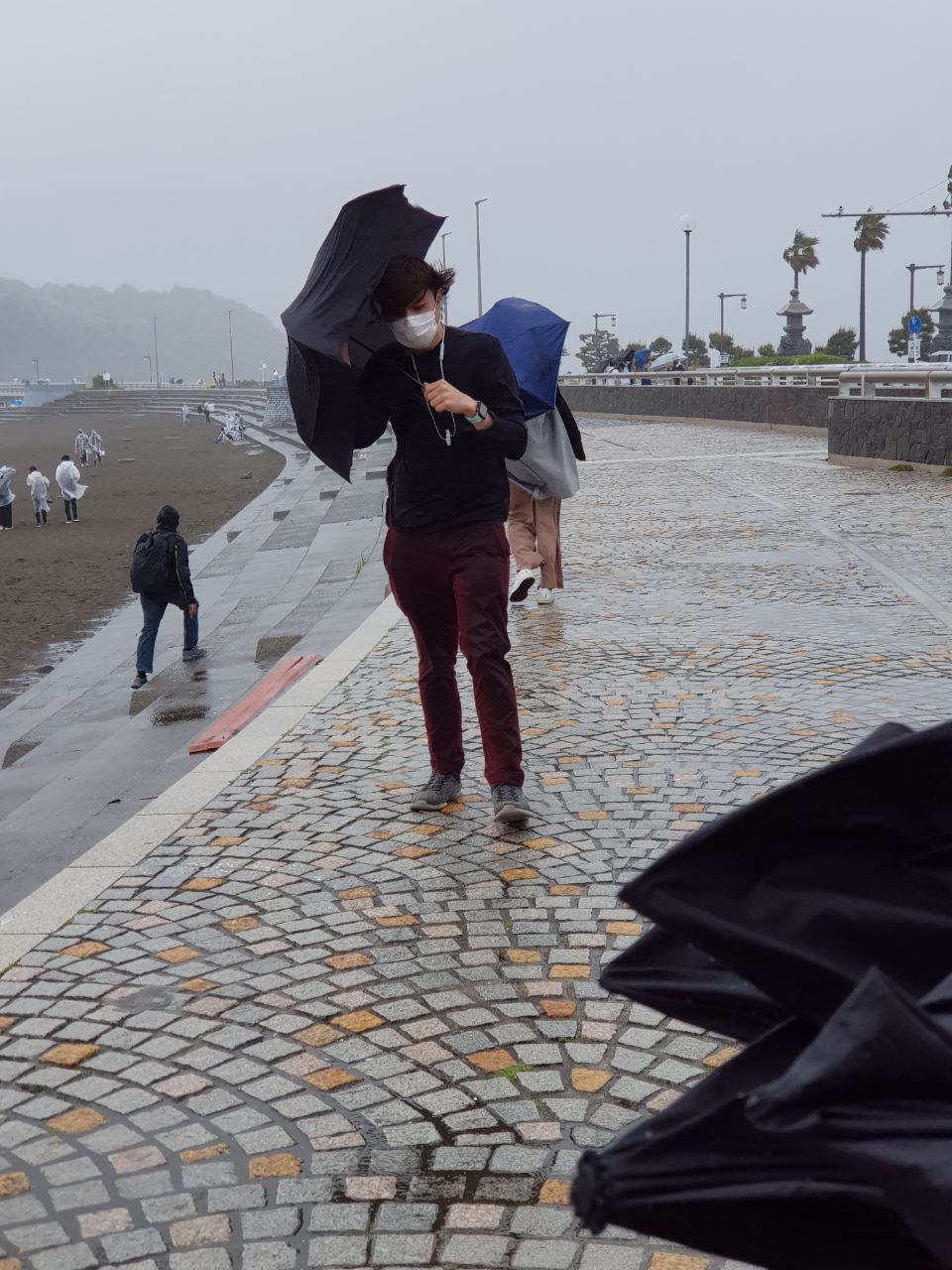 The best of plans are nothing in the face of Mother Nature, because despite bright clear sunny days before and after the 1st of May, what we got on the actual day felt like a bonafide typhoon (although it wasn’t actually one). The weather forecast had already given us advance warning, but just maybe, the rain could come again another day…? Nope, by the time the event commenced at Katase Higashihama Beach (片瀬東浜海水浴場 Katase Higashihama Kaisuiyoku-ba), the wind and rain were already going at full blast.