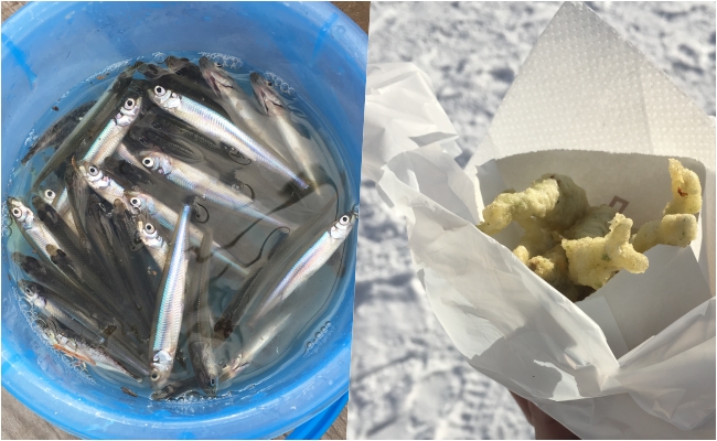 Though it was my first time fishing for Japanese smelt, I was amazed at how easy it was to fish for them, because they just kept coming and coming! Perhaps they were hungry or something, or maybe it was beginner’s luck, but in the 30 minutes or so I fished, I managed to net so many of them I stopped counting after a while! (Admittedly around 20 of them were given to me by a kindly old couple who, after fishing for 10 minutes, stopped as they had to return to their tour group, but even without their contribution I had over 50 of them!)