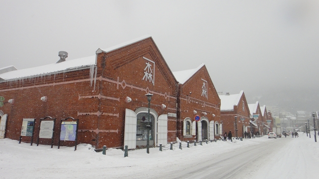The red bricks of the Kanemori Red Brick Warehouse standing out in the whiteness of the snow. (Image credit: Kevin Koh)