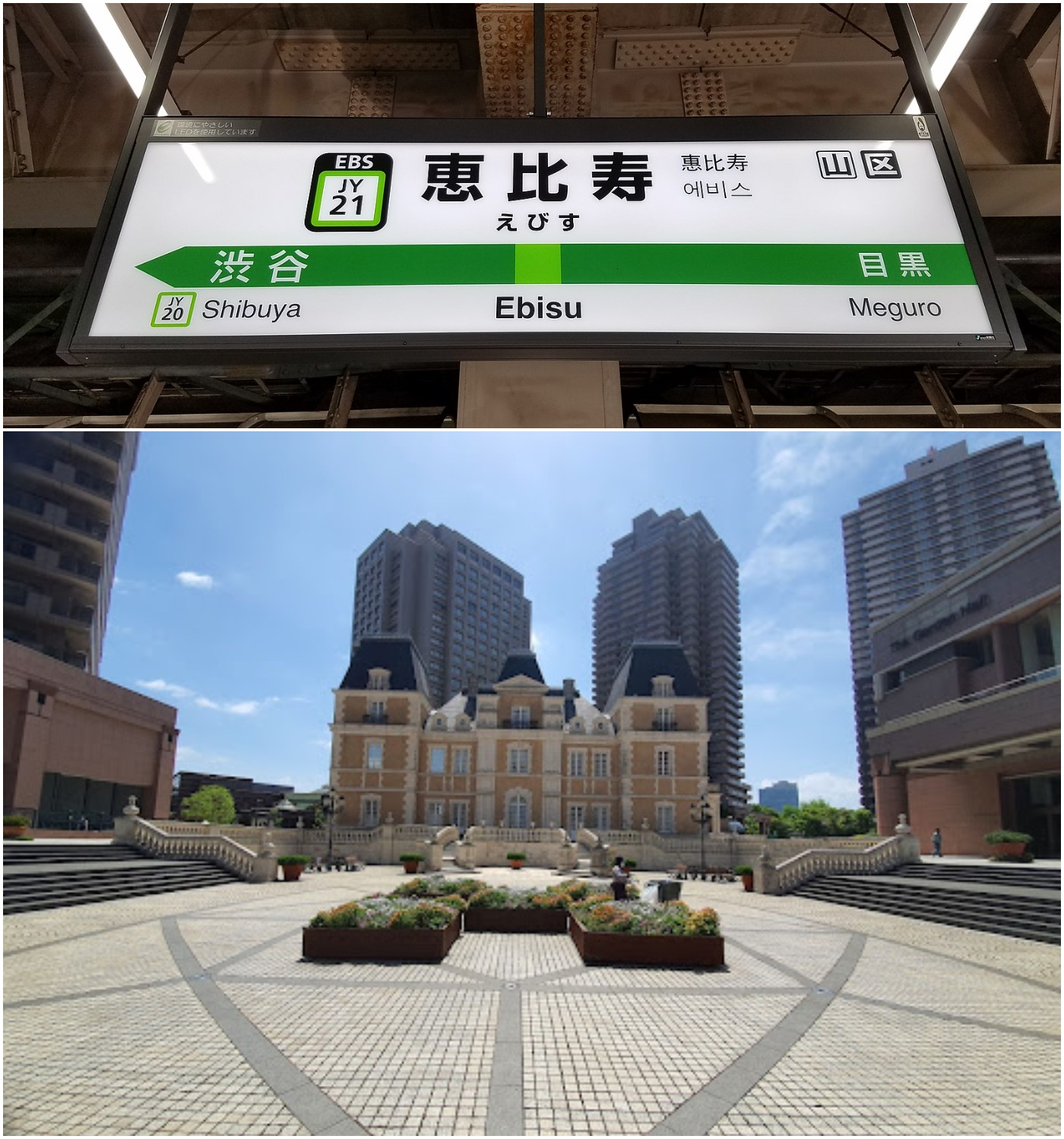 The next stop, Ebisu (恵比寿) is a popular dating spot for couples to spend a romantic evening. The architecture reminds me of the castle that appeared in Disney’s Cinderella. The plaza around Ebisu Station (恵比寿駅 Ebisu-eki) looks majestic in the day, and I can imagine why couples like to indulge in its magical atmosphere at night.