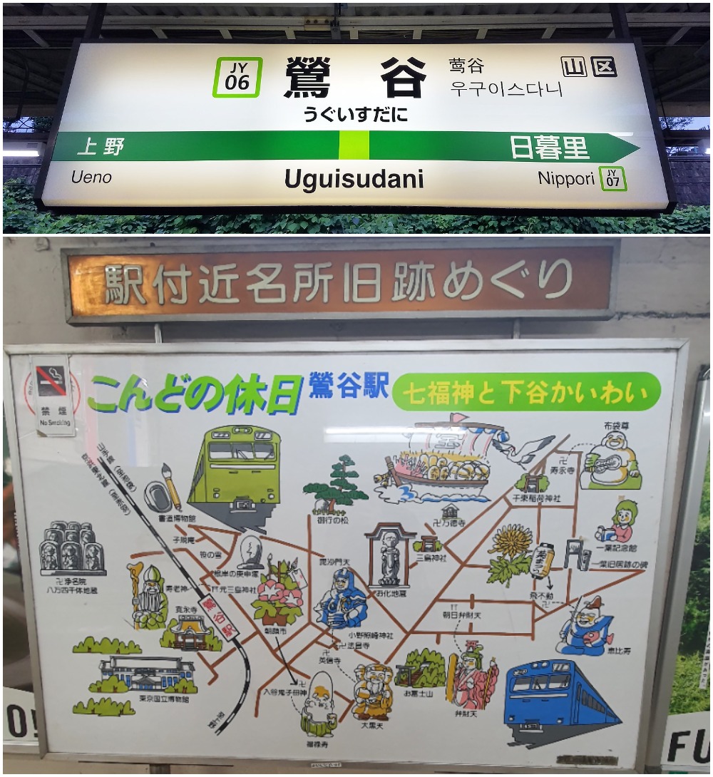 The immediate vicinity of Uguisudani Station (鶯谷駅 Uguisudani-eki) is lined with numerous hotels of various types (business and love hotels) and does not appear to interest tourists. However, the locality map reveals that there are numerous statues and religious buildings that will be of interest to history buffs and those with a keen interest in religious establishments. Additionally, it is rumoured that some of the best ramen shops are in the locality of Uguisudani and ramen-lovers frequent these places to get their ramen fix.