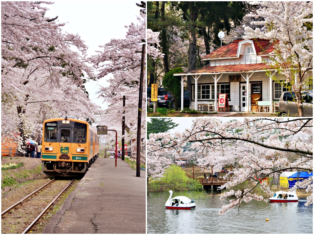 Anda dapat menikmati sakura di peron, di depan bekas gedung Stasiun Ashinokōen, di atas perahu pedal, dan banyak lagi. (Kredit gambar: 青森県観光連盟)