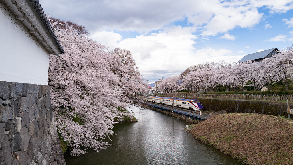 Apakah Anda penggemar kastil Jepang? Di Prefektur Yamagata, hanya 10 menit berjalan kaki dari Stasiun JR Yamagata (山形駅) adalah Taman Kajo (霞城公園 Kajо̄ Kо̄en), yang mana rumah dari kastil terbesar di Tohoku berdasarkan wilayah—Kastil Yamagata. Rel kereta api dibangun tepat di samping taman, sehingga Anda dapat menikmati pemandangan dinding batu kastil, parit, bunga sakura, dan shinkansen yang lewat (新幹線 kereta peluru). Tetapi cepatlah saat mengambil foto Anda, karena meskipun shinkansen tidak akan mencapai kecepatan tertinggi di sini karena letaknya yang dekat dengan stasiun, shinkansen tetap bergerak dengan kecepatan yang sangat tinggi!