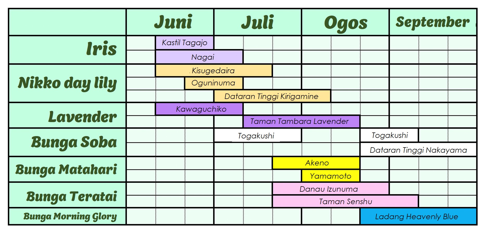 Kalender bunga musim panas. (Kredit gambar: JR East / Carissa Loh)
