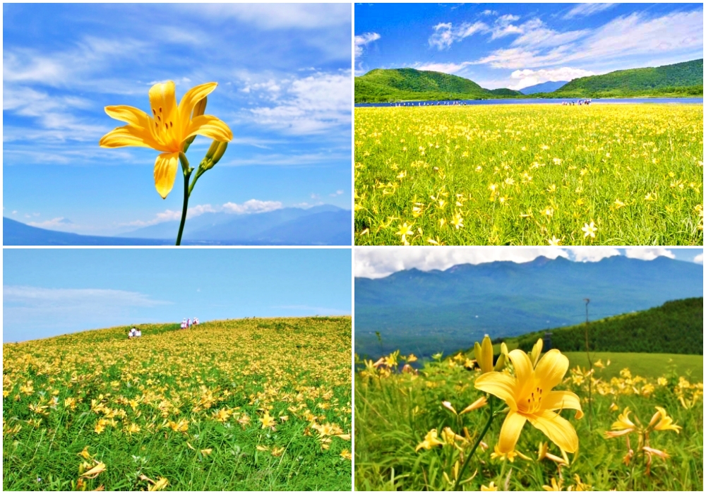 Di pegunungan Prefektur Nagano (長野県), Anda dapat menemukan ladang bunga Nikko day lilies di sekitar Dataran Tinggi Kirigamine (霧ヶ峰高原), terutama di Gunung Kurumayama (車山). Kirigamine adalah dataran tinggi dengan lereng landai dan dataran berumput yang luas, dan titik tertingginya adalah Gunung Kurumayama, dengan ketinggian 1,925m. Jangan khawatir tentang naik ke sana, serangkaian lift ski membawa Anda sampai ke puncak Gunung Kurumayama!