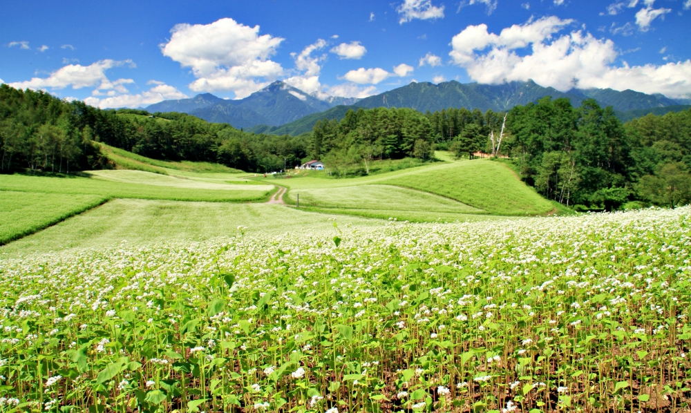 Di masa lalu, medan pegunungan Nagano membuatnya sulit untuk menanam padi, sehingga mereka mengandalkan soba (そば soba) sebagai makanan pokok. Sekarang, soba adalah salah satu produk pertanian unggulan Nagano, dan Anda dapat menikmati bunga putihnya yang cantik di musim panas!