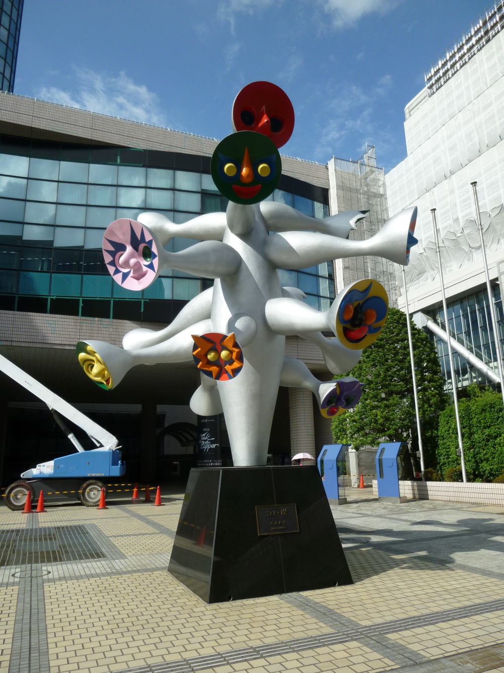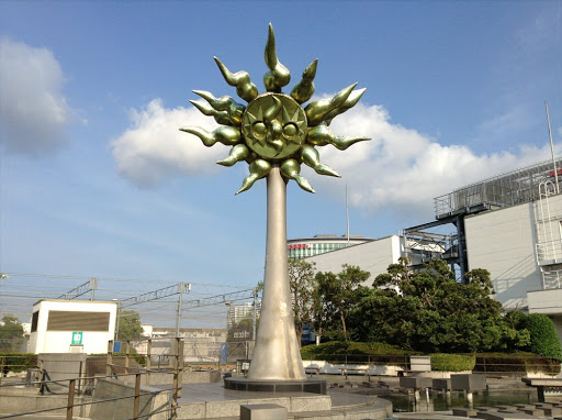 Thinking of doing a daytrip out of Tokyo to the neighbouring city of Yokohama? Check out the many shopping malls this harbour city has to offer, including the Yokohama branch of SOGO Department Store. Located right next to the bustling city center Minatomirai, SOGO Yokohama was opened in 1985 and to commemorate its opening, Okamoto was commissioned to create this sculpture of a literal "Sun Tower" (太陽 Taiyō) at the mall's rooftop. Even after 35 years, the statue still stands tall and anyone can visit the open seating area at the roof. Similar to his Tower of the Sun, this golden sculpture has three phases (read: faces) of the sun: the gentleness of the morning sun, the fierceness of the afternoon sun, and the calmness of the setting sun.