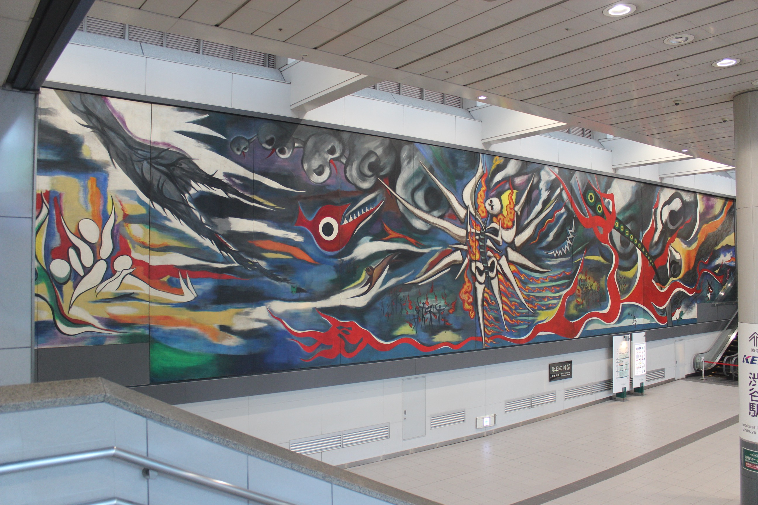 If you've ever gotten lost navigating through the maze that is Shibuya Station before, chances are that you've walked past this 30m long mural. Permanently installed in 2008, the "Myth of Tomorrow" (明日の神話 Asu no Shinwa) mural was actually rediscovered after thought to be missing forever in the suburbs of Mexico for decades. The grotesque mural was originally painted in 1969—around the same period as when Tower of the Sun was conceived—and it depicts Okamoto's reflections on the horrific suffering brought about by the nuclear arms race of the Cold War and fear of nuclear weapons. The next time you make your way between the JR lines and Keio Line in Shibuya Station, try to take a moment to appreciate this powerful mural.