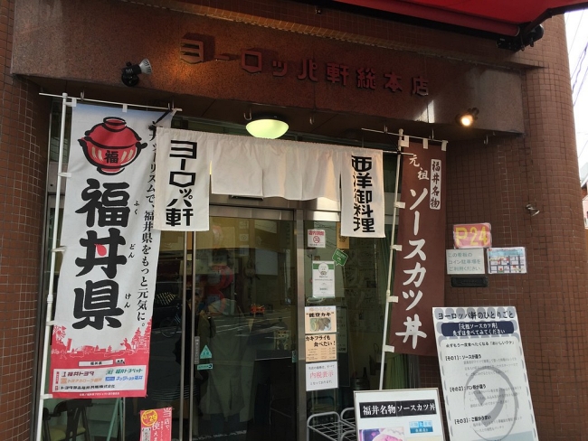 The exact roots of sauce katsudon are unclear due to a lack of literature. However, the few records that do exist mostly point to Europa-ken (ヨーロッパ軒), a local restaurant chain in Fukui with 19 outlets in the prefecture. The founder, Takahata Masutarō (高畠増太郎), started the first outlet in his hometown in 1924 upon moving back from Tokyo after the Great Kanto Earthquake, where he had previously opened a shop under the same moniker. Having undergone culinary training in Germany for six years, a rarity in those days, Takahata was enamoured with Worcestershire sauce while there, and sought ways to introduce it to the Japanese palette, eventually coming up with sauce katsudon after some trial and error.