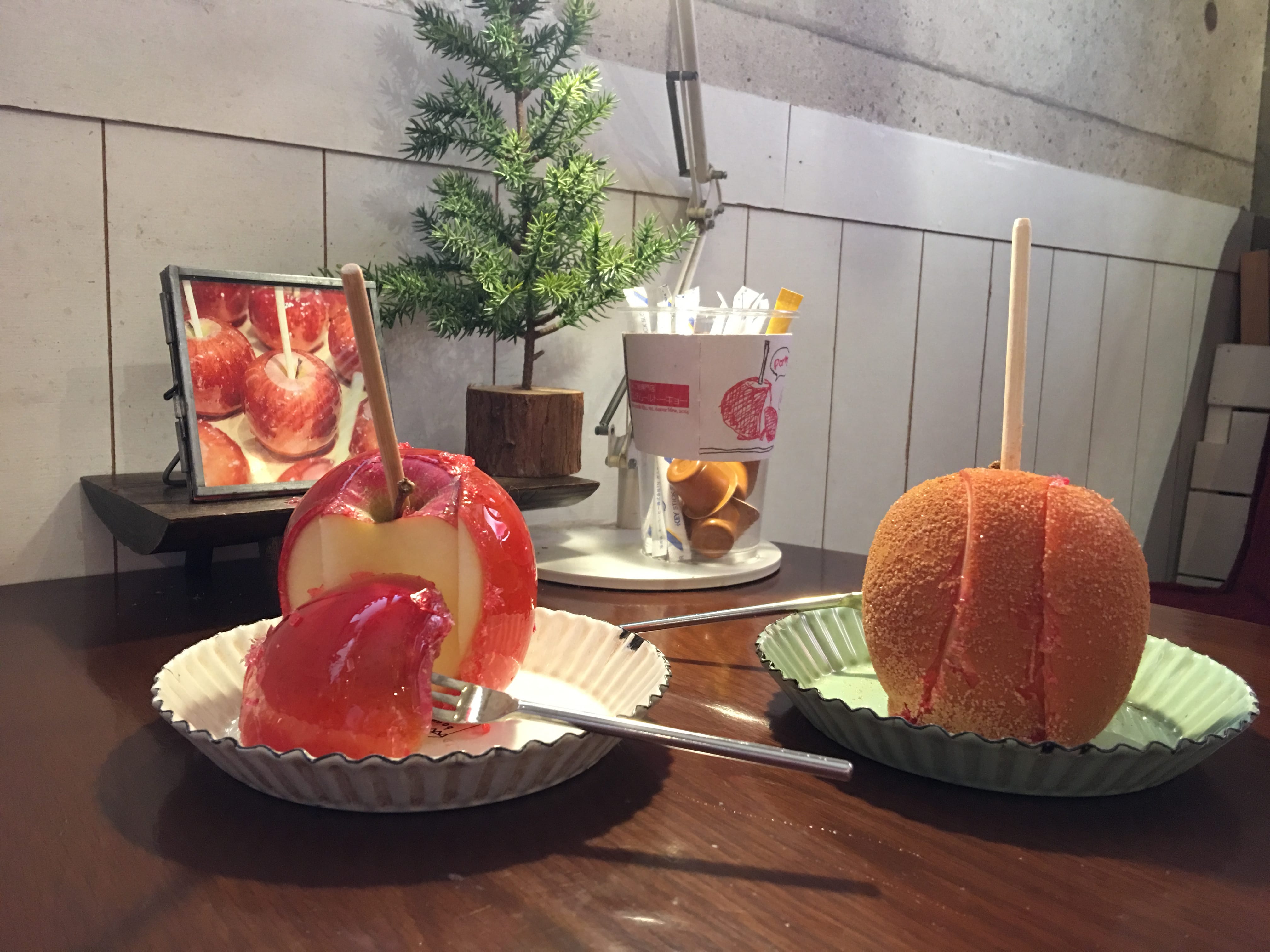 A signal of the coming of summer is candied apple, or ringo ame (りんご飴), making its sweet appearance at summer festival markets. They’re almost exclusively a summer treat, like kakigori, except at cafe Pomme d’AMOUR, where they can be found year-round.