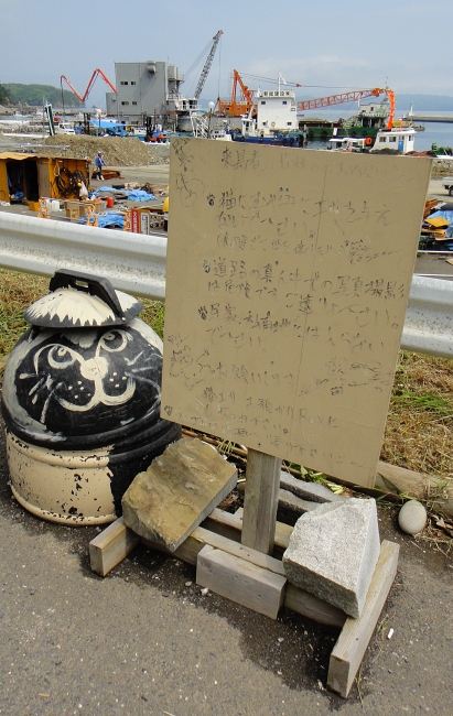 A small island of around 3km2 in size and located 15km off the coast of Ishinomaki (石巻市 Ishinomaki-shi), Tashirojima once had a thriving population of around 1,000 in the 1950s. However, today, that number has dwindled to less than a tenth of what it was—the sole primary school on the island shuttered in 1989. With the average age of the islanders estimated to be around 71, the future of Tashirojima looked bleak at one point—yet, through the clever use of the many cats that roam the island freely, it has managed to reinvent itself as a tourist spot, and welcomed more than 30,000 tourists in 2014, a remarkable recovery for a place that suffered damage from the Great East Japan Earthquake (東日本大震災 Higashi-Nihon Daishinsai) and tsunami in 2011.