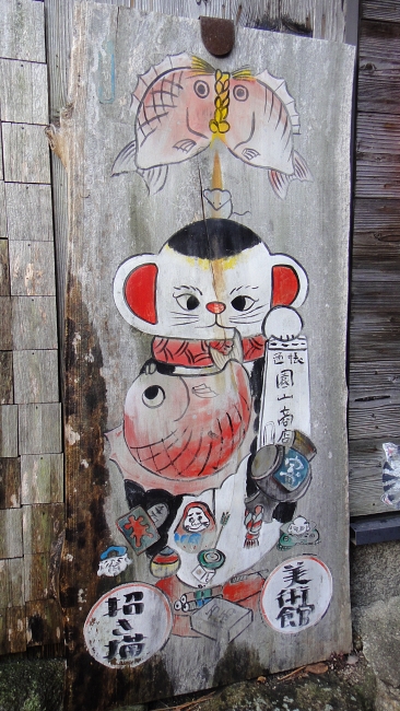 Along the alley, you will also find fukuishi-neko (福石猫), “lucky stone cats”, rocks painted by Sonoyama to look like felines. The stones, naturally rounded after many years of being battered by the sea, are carefully treated to remove any traces of salt from within before being painted and blessed by a priest at Ushitora Shrine (艮神社 Ushitora-jinja) in Onomichi, the whole process taking between seven to eight months. There are over a thousand of such stone cats lining Neko-no-Hosomichi and living all over Onomichi, with a few up for “adoption” online!