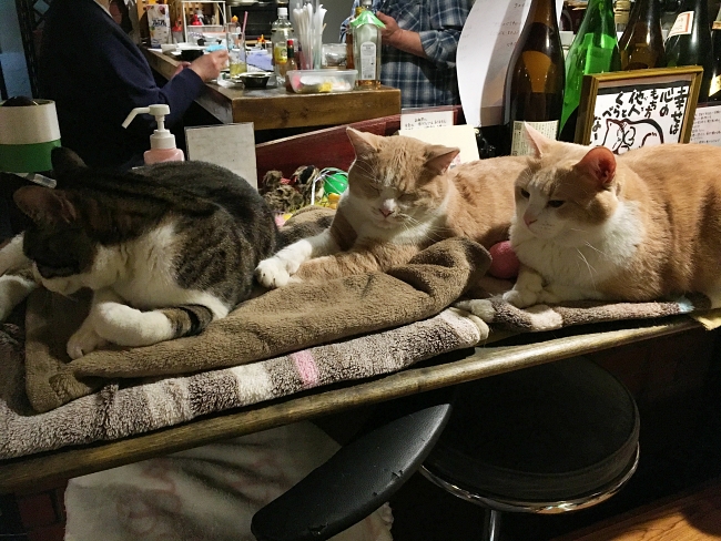 A counter at Akanasu taken over by the cats. Three’s a crowd... (Image credit: Kevin Koh)