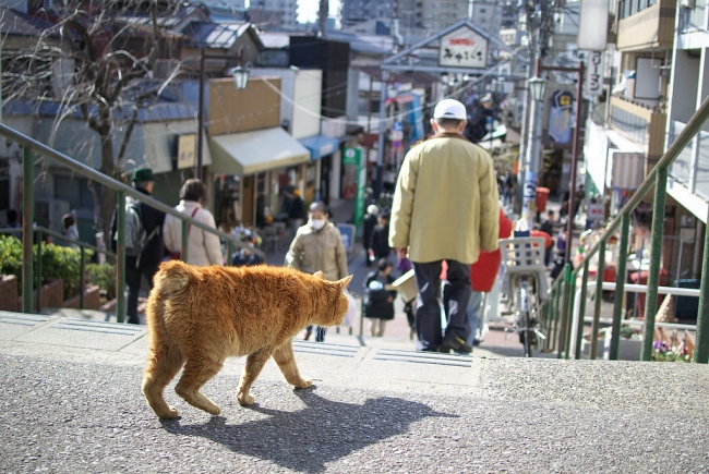 A cat prowling the steps leading to Yanaka Ginza. (Image credit: Tokutomi Masaki / CC BY-NC 2.0)