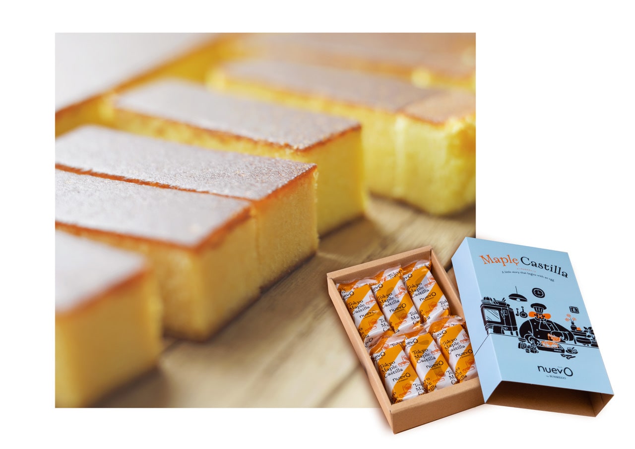Bunmeido Tokyo (文明堂東京), a castella specialty store with over 100 years of history, has launched nuevo by BUNMEIDO—a new concept that retains their signature castella products and assorted casual gifts. True to tradition, their castella is made with four simple ingredients: eggs, sugar, flour, and sugar syrup. The addition of the fifth ingredient—maple syrup—in their Maple Castilla gives it a softer bite and moist texture, while not being too sweet. Pair this luxurious maple-scented confection with a cup of hot tea for an idyllic afternoon break.