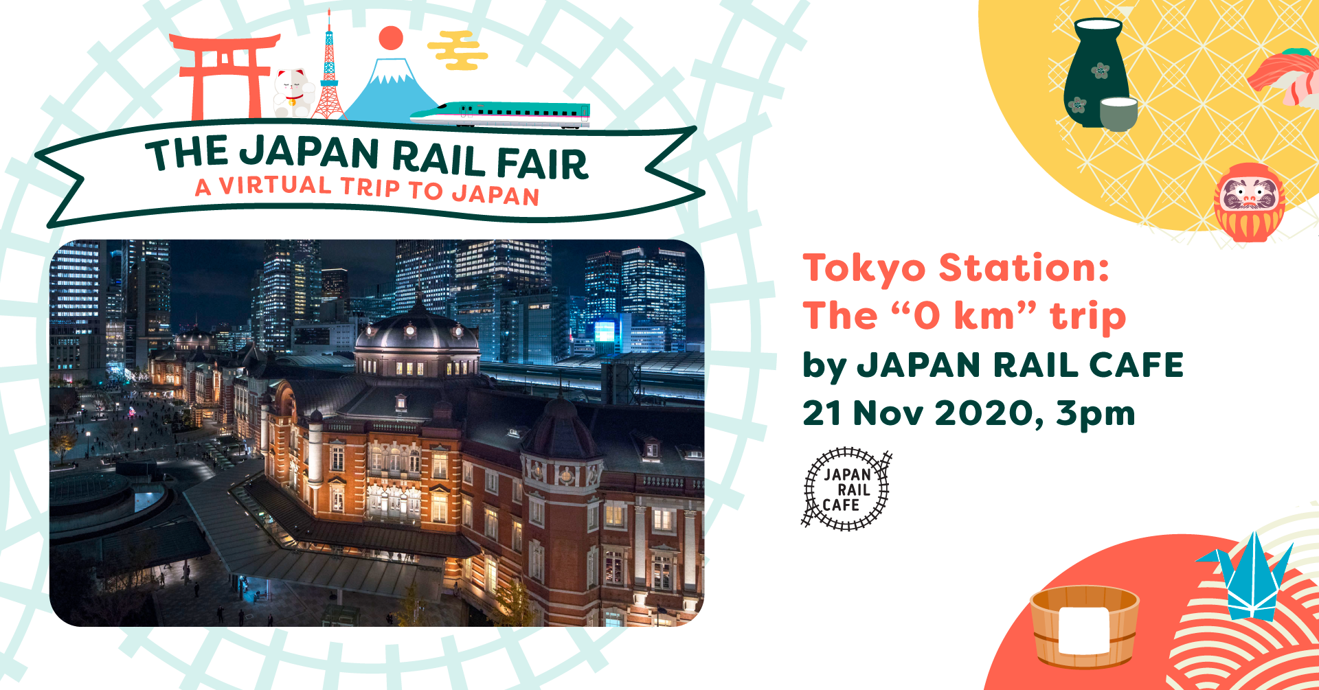 JAPAN RAIL CAFE proudly presents The Japan Rail Fair—the first ever online rail travel fair—to your screens! Learn more about the different aspects of Japan’s railway in this fun-filled week—where there will be exciting activities as well as informative webinars, sharing sessions, and engaging workshops that celebrate the wonders of Japan rail travel. More details will be released in early November, so in the meantime mark your calendars and we’ll see you rail-ly soon!